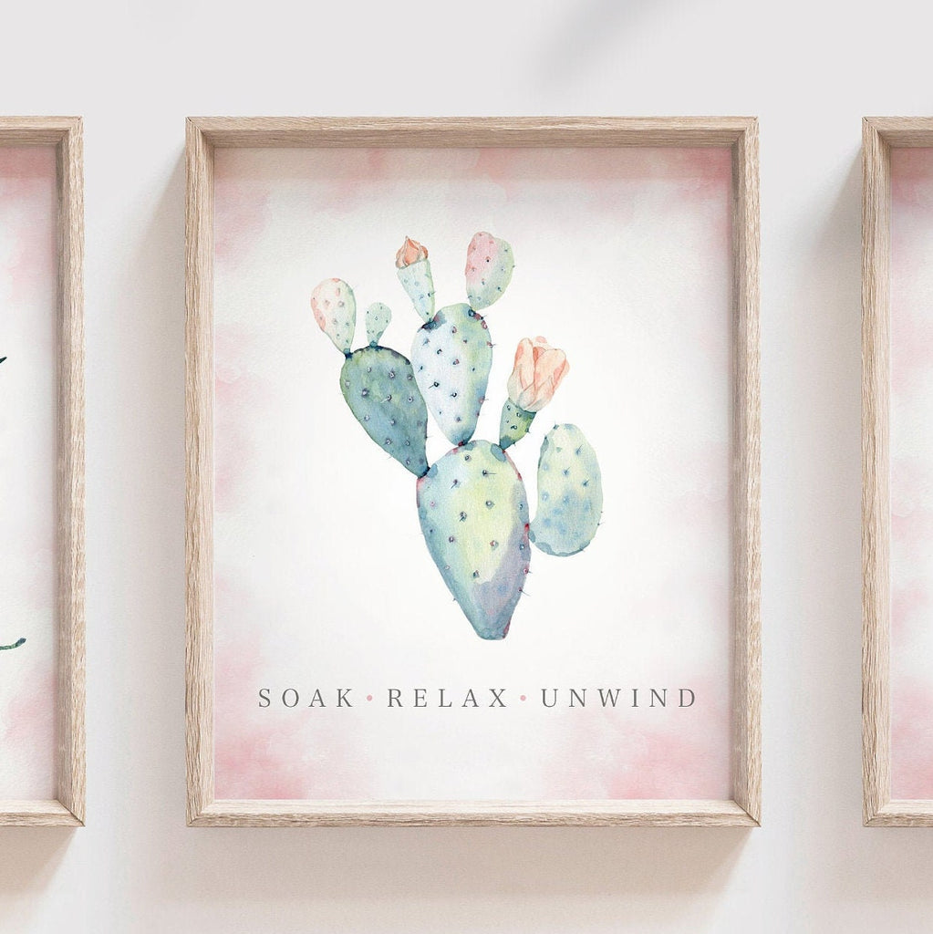 Bathroom wall decor, guest bathroom wall art, soak relax unwind flower art for bathroom, adult bathroom art, bathroom cactus wall art prints