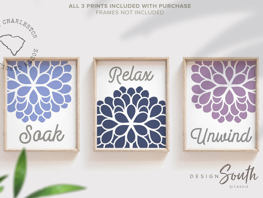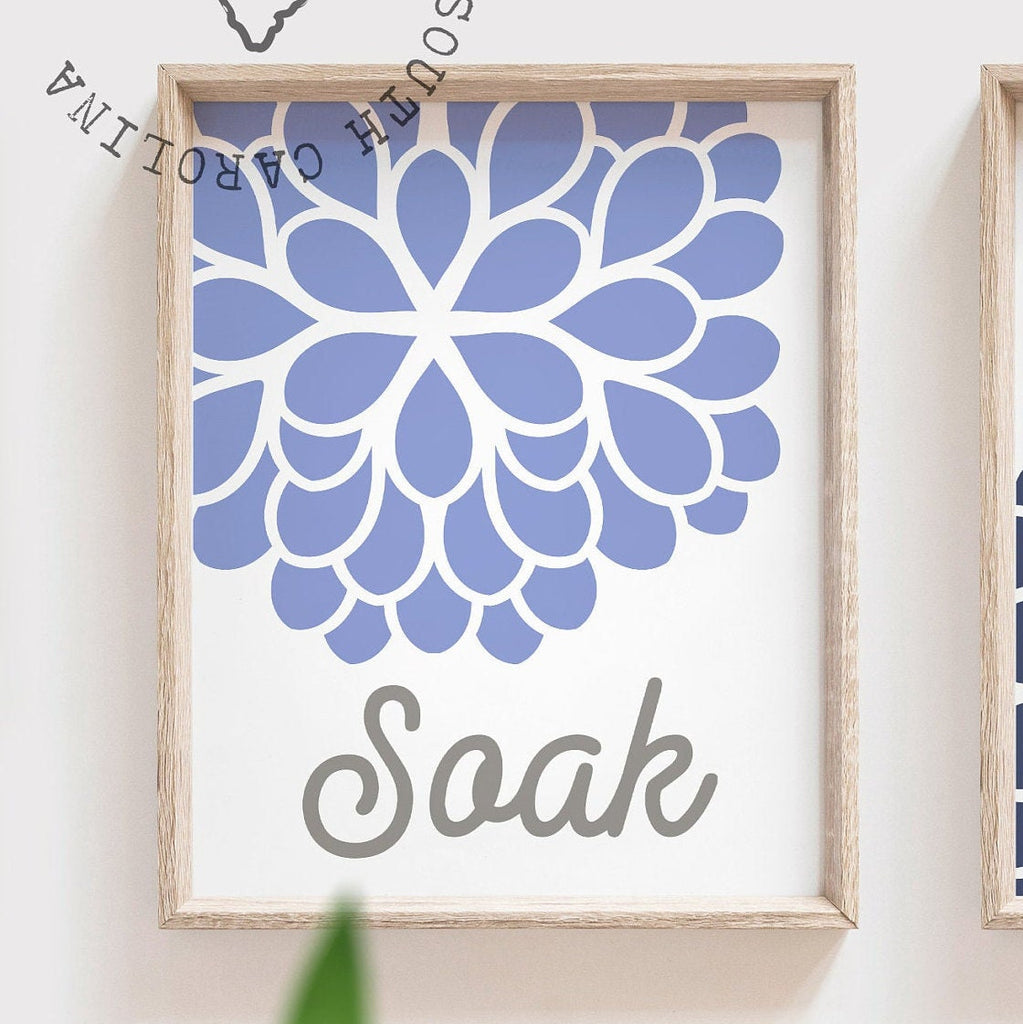 Bathroom wall decor, soak, relax, unwind, flower art for bathroom, adult bathroom art, children's wall art, bathroom flower art, flower art