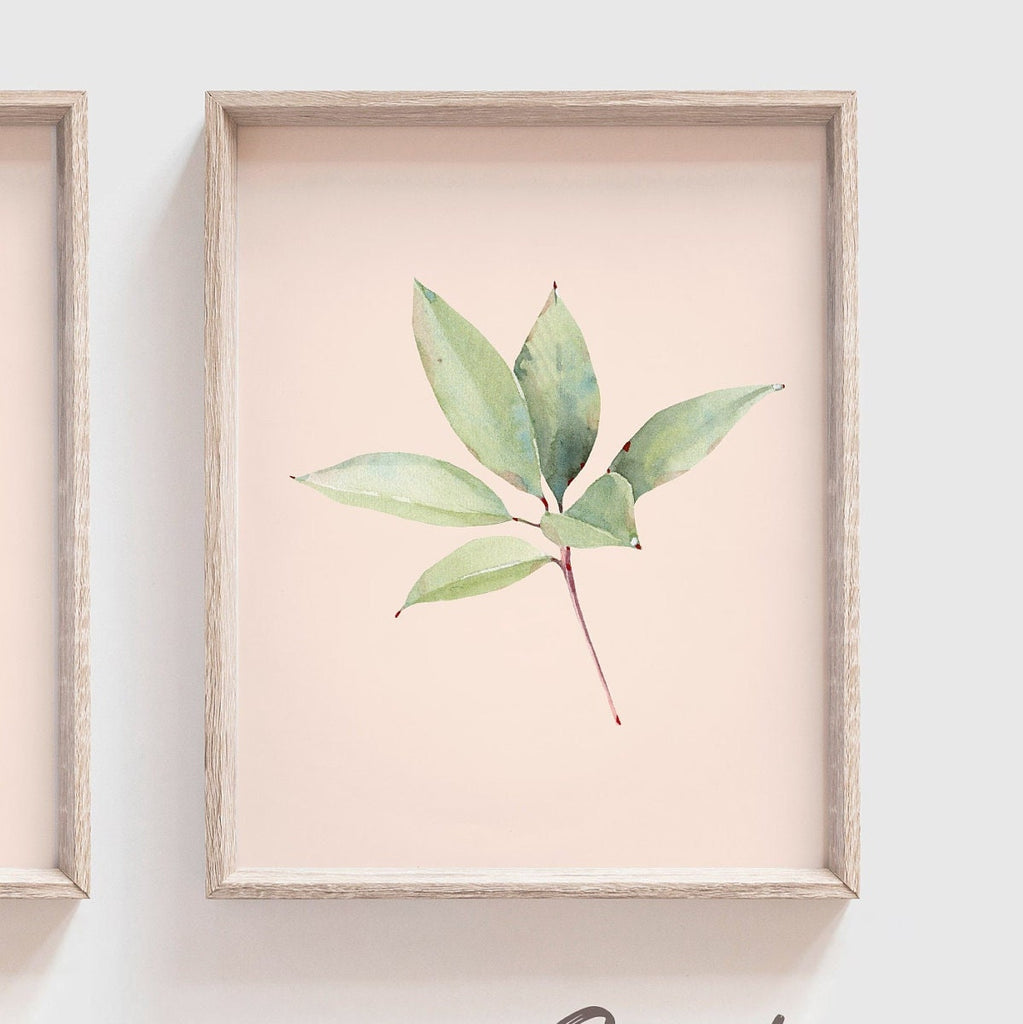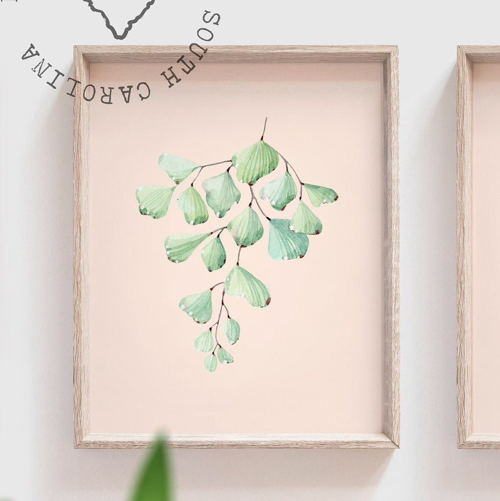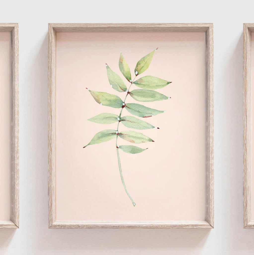 Blush pink and green plant wall art set, bathroom plant art, decor wall modern tropical plant, pink green bathroom, blush pink plant nursery