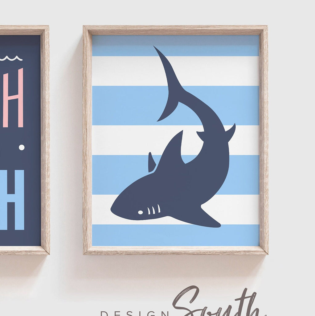 Thank you for choosing Design South. I take pride in creating all of my designs. These adorable shark wall prints are perfect for a boy/girl bathroom.