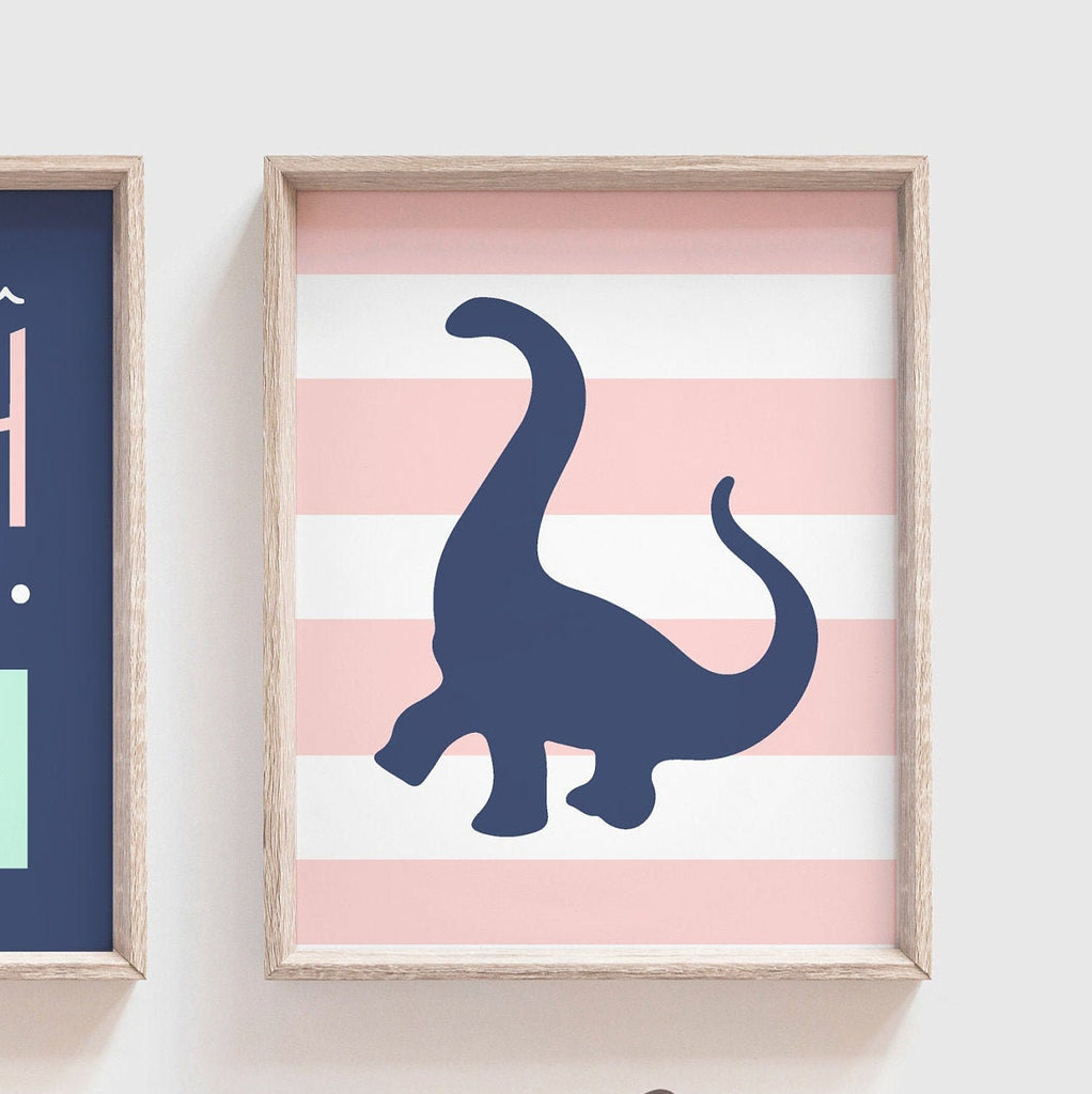 Kids boy girl wall decor, dinosaur bathroom print set, dinosaur twin decor, boy girl bathroom dinosaur themed, mint pink and navy kids art