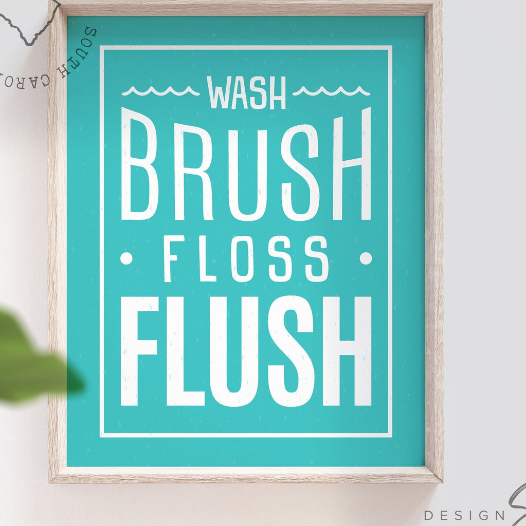 Wash, brush, floss, flush, bathroom art, turquoise bathroom, boy girl bathroom decor, turquoise art, turquoise bathroom decor, kids bathroom
