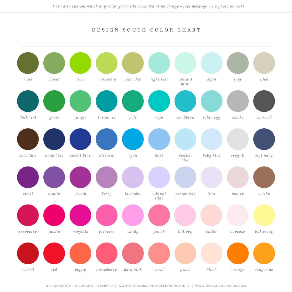 **NOTE: Please leave a message in the 'notes to seller' section during checkout with your color choices from the chart above if you are requesting colors that are different from this listing. If you do not see the color(s) you want, send me a message! I also accept pictures of nurseries, bedding, and decor for color matching.