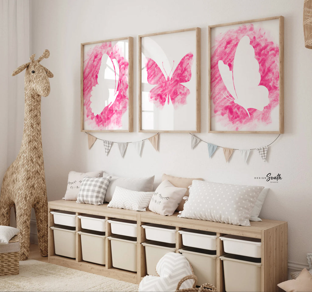 I take pride in creating all of my designs. These butterfly themed wall art prints will redefine the walls of a girl's nursery, playroom or bedroom. Each design is curated with a passion and vision to create inspired spaces for you and your little ones.