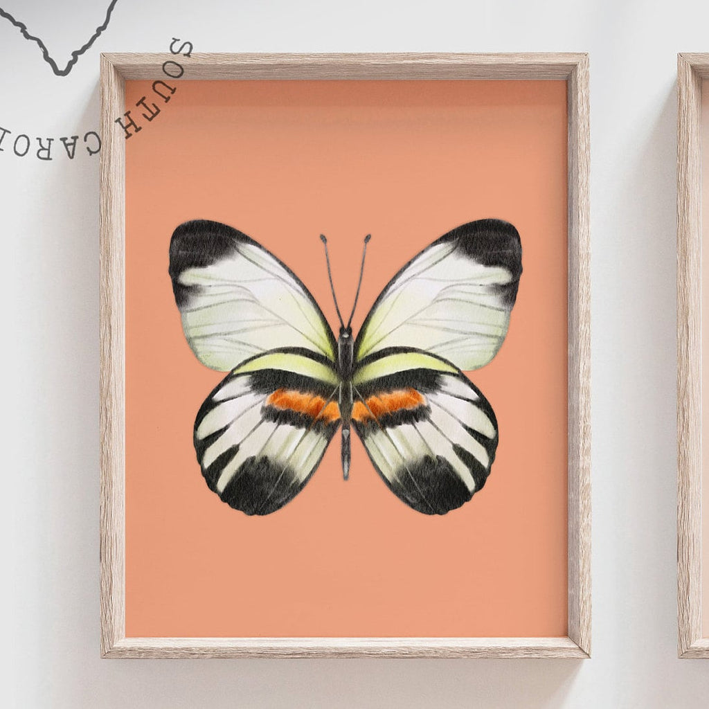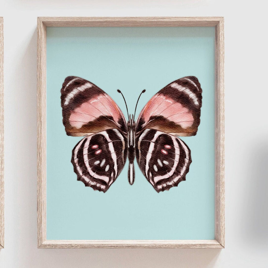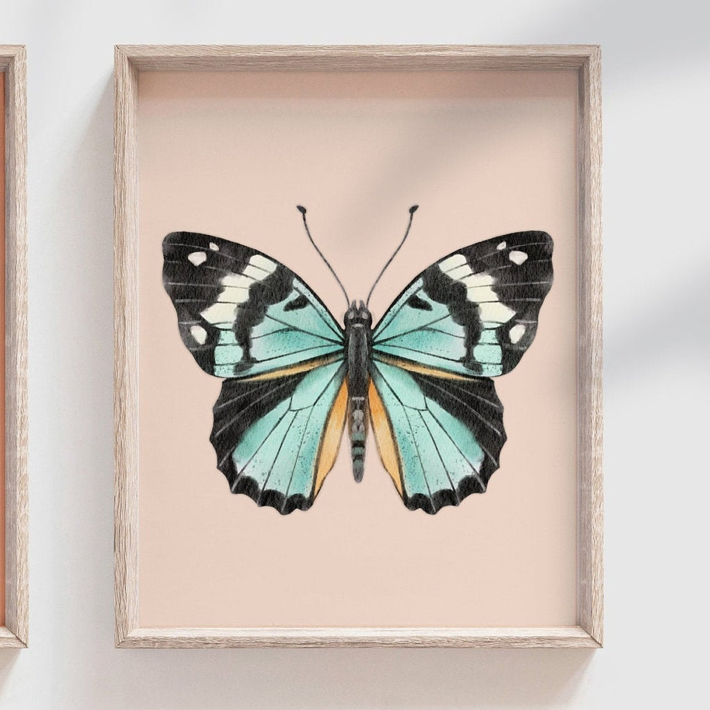 Product description: Watercolor illustrated butterfly prints with solid pastel colored backgrounds. Other options are also available in my shop. Other options are also available in my shop.