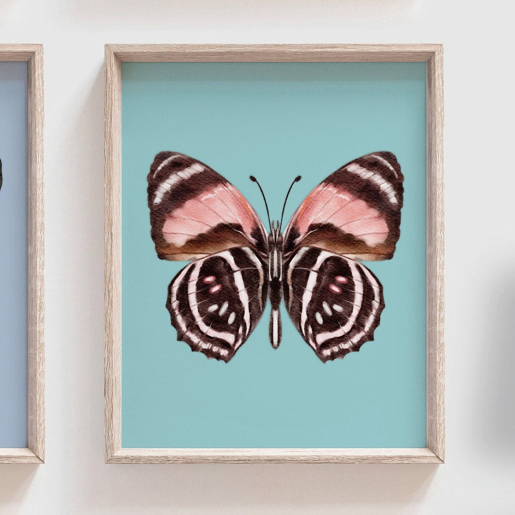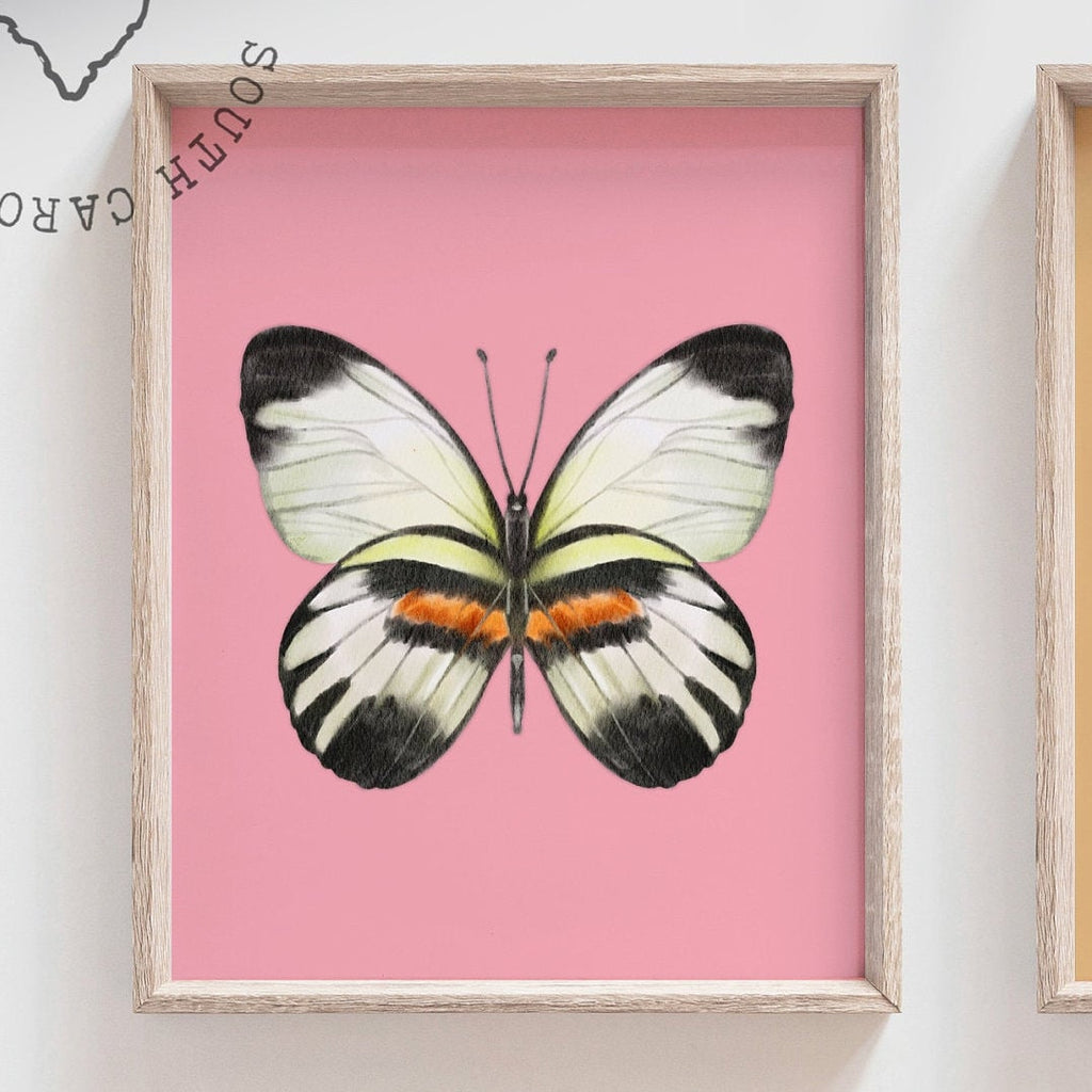 Product description: Watercolor illustrated butterfly prints with solid pastel colored backgrounds. Other options are also available in my shop.