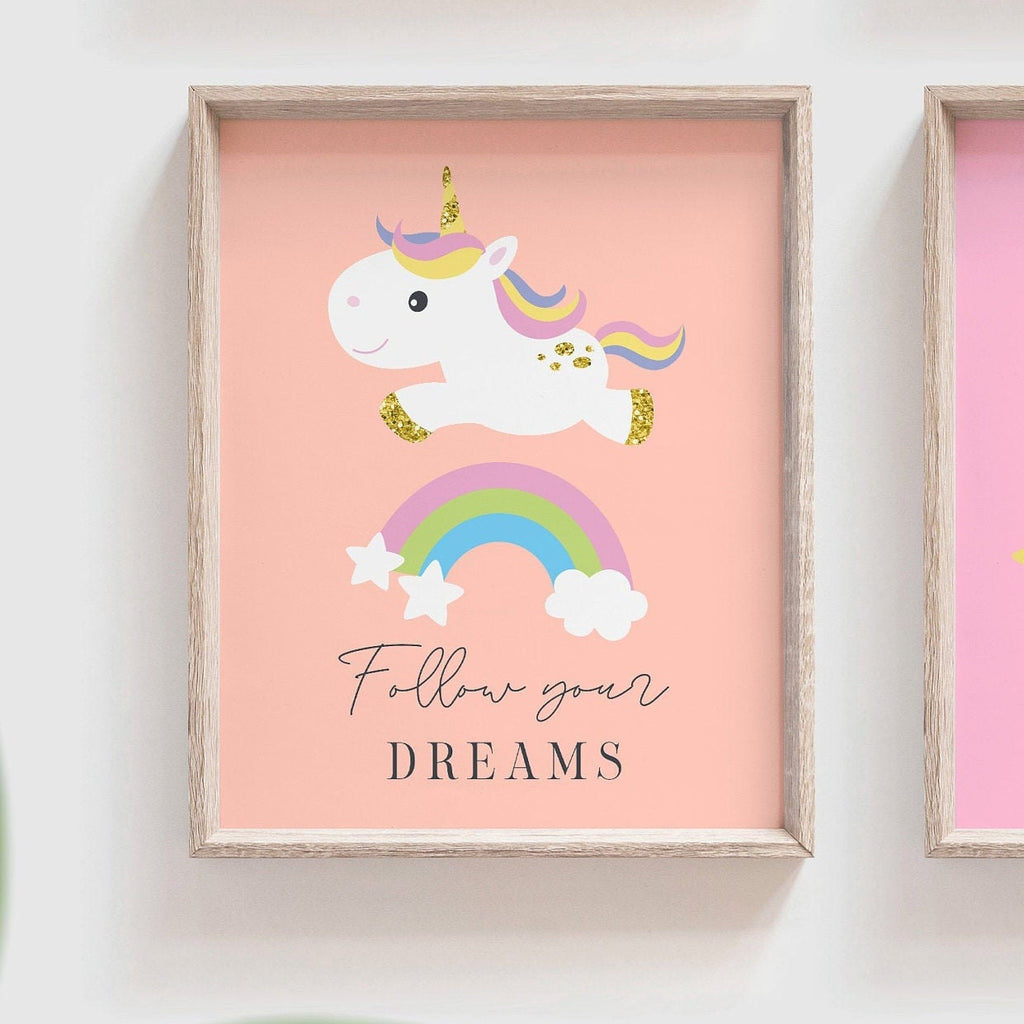 I take pride in creating all of my designs. These sweet unicorn wall art prints will redefine the walls of a girl's nursery, playroom or bedroom. Each design is curated with a passion and vision to create inspired spaces for you and your little ones.