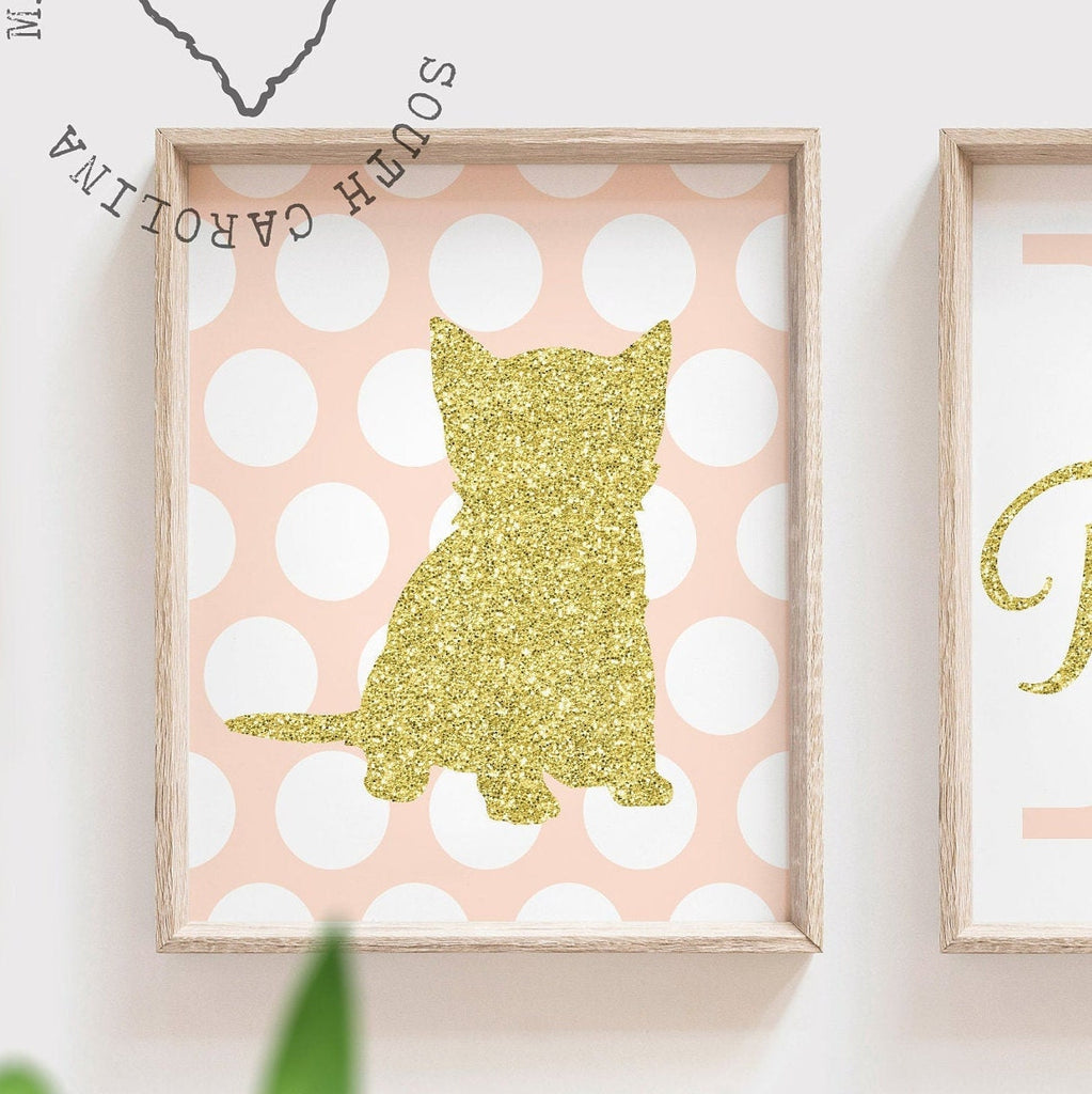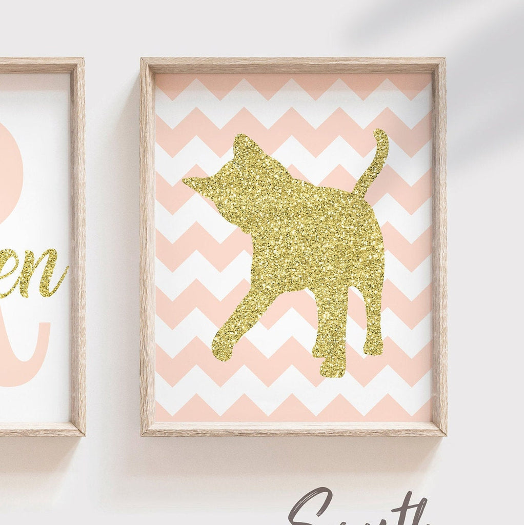 Baby girl nursery decor pink and gold, kitten pictures nursery wall art for girls, wall decor for girls pink and gold, kitty cat nursery art