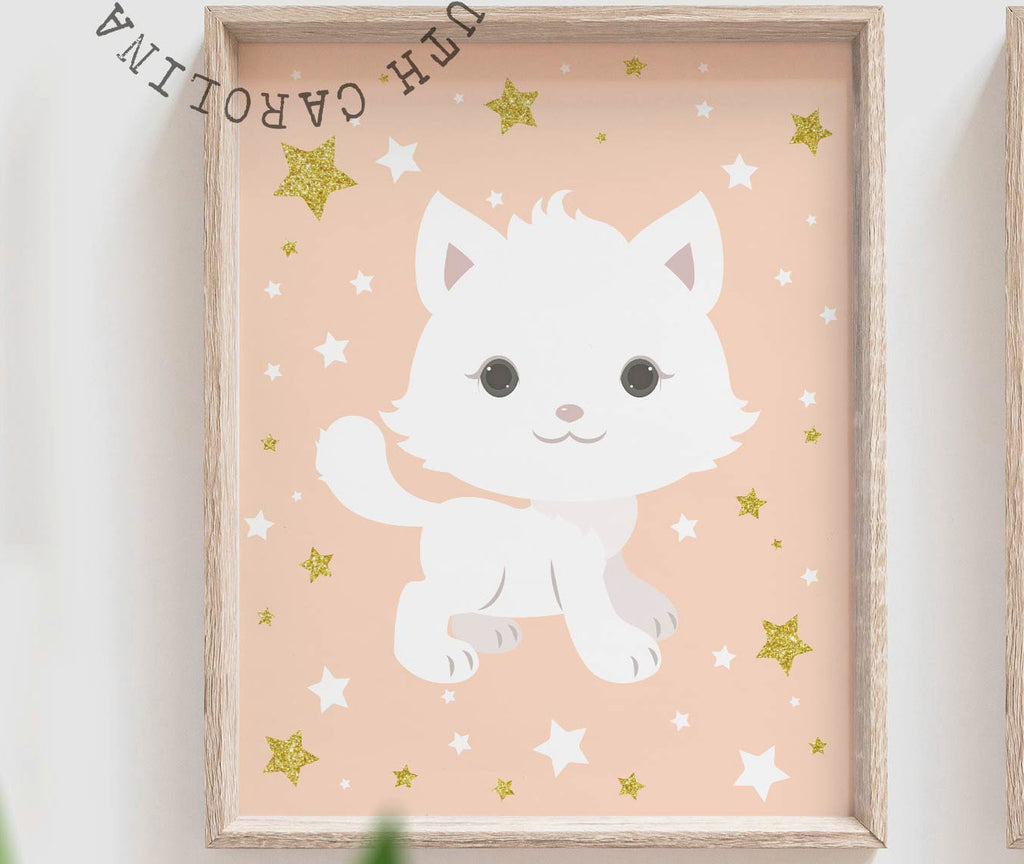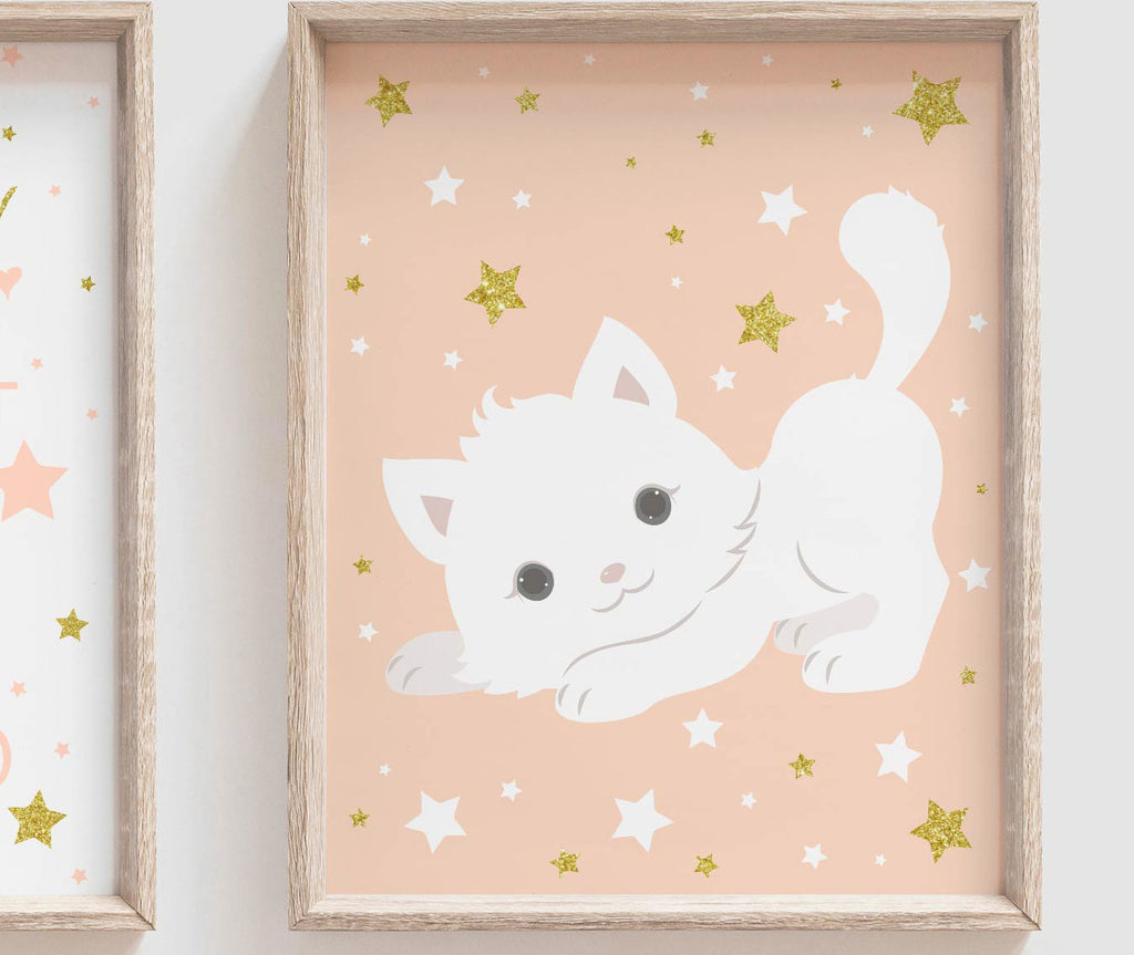 I take pride in creating all of my designs. These contemporary sparkle kitten themed wall art prints will redefine the walls of a girl's nursery, playroom or bedroom. Each design is curated with a passion and vision to create inspired spaces for you and your little ones.