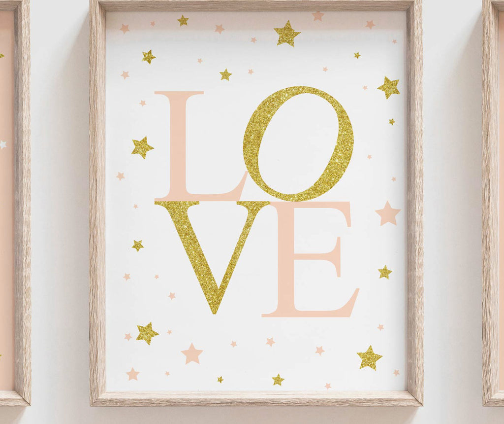 Product description: Kitten art prints in blush with faux gold sparkles and matching LOVE design. Other options are also available in my shop.