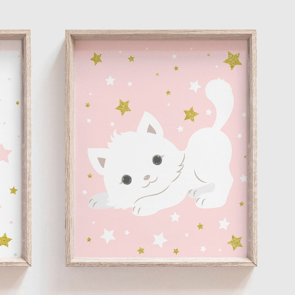 Kitty cat nursery, mint pink, cute cat print, girls kitty cat decor, cute kitty wall art, cat nursery art, pink cat nursery decor baby girl