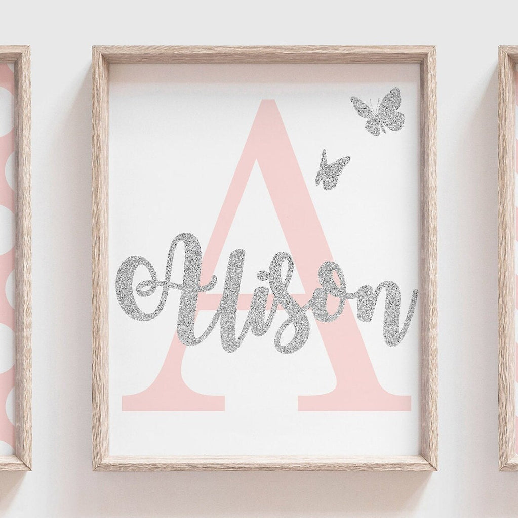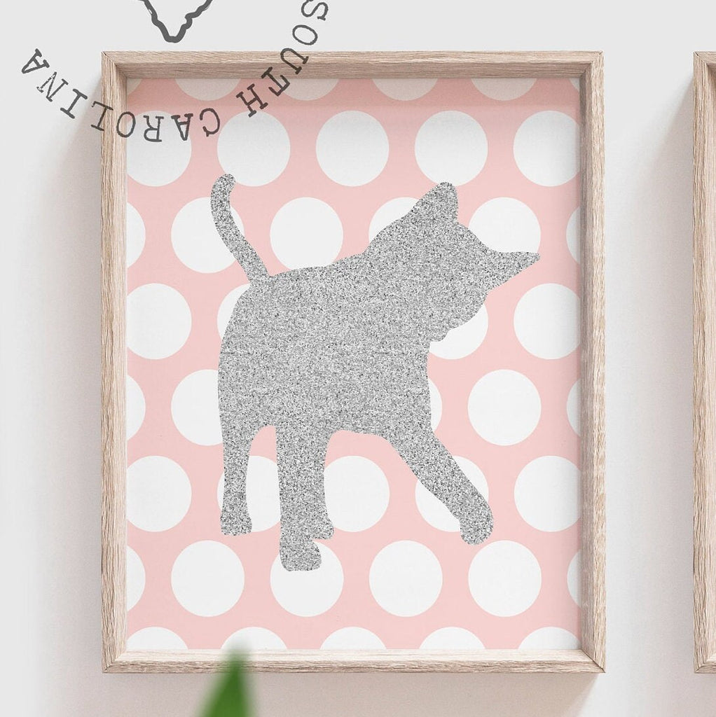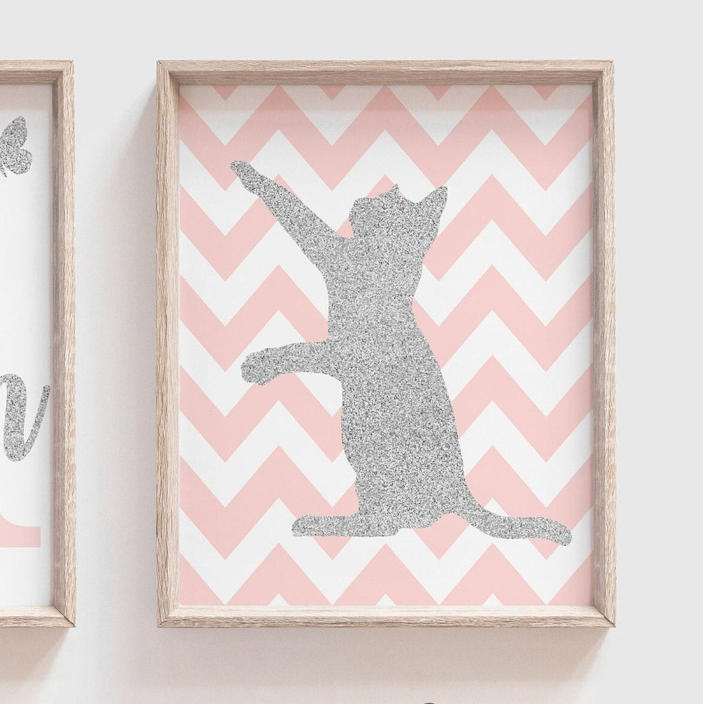Pink and silver glitter nursery, cute kitten picture, girls kitty cat decor, baby girl pink kitten, kitty nursery, kitten wall art for girls