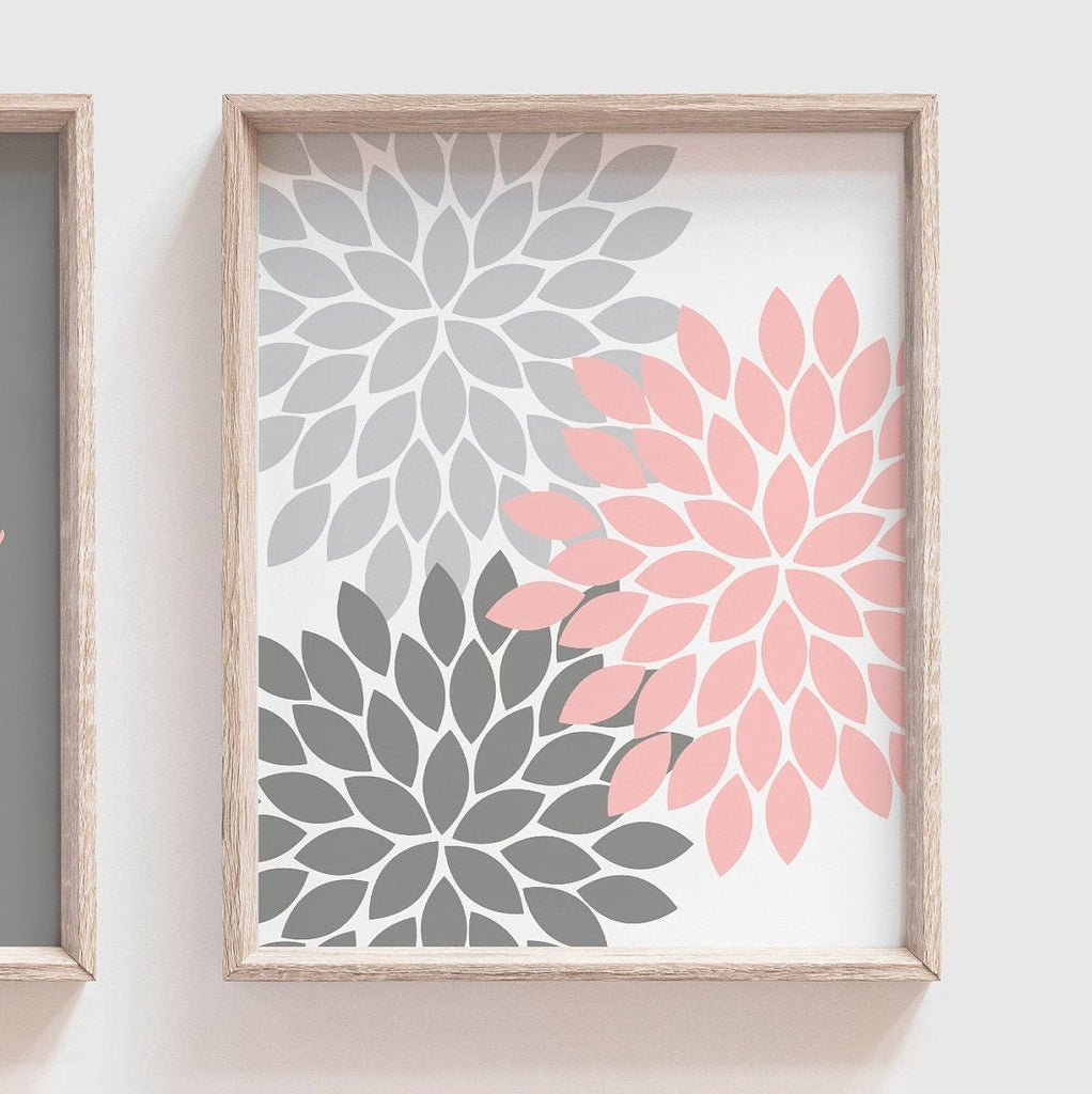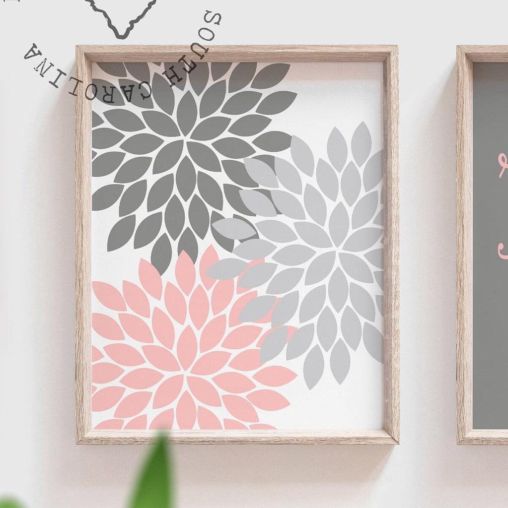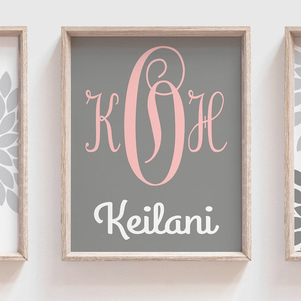 Baby girl nursery pink and gray, pink and gray flower nursery, pink and gray monogram nursery art, baby girl monogram art for nursery, pink