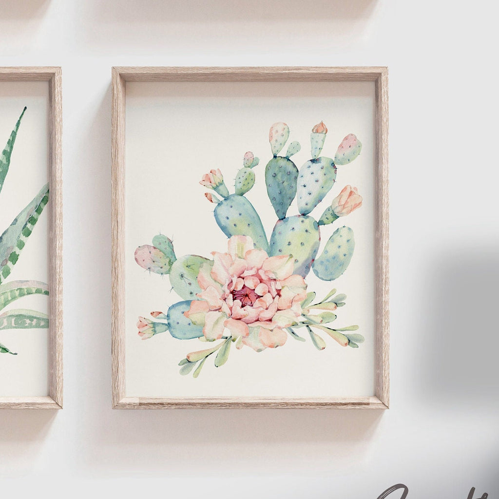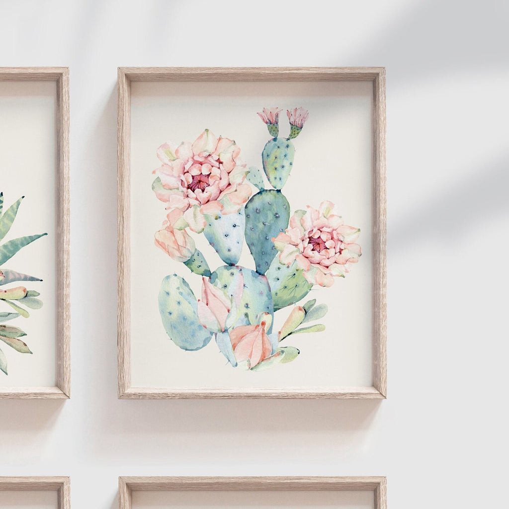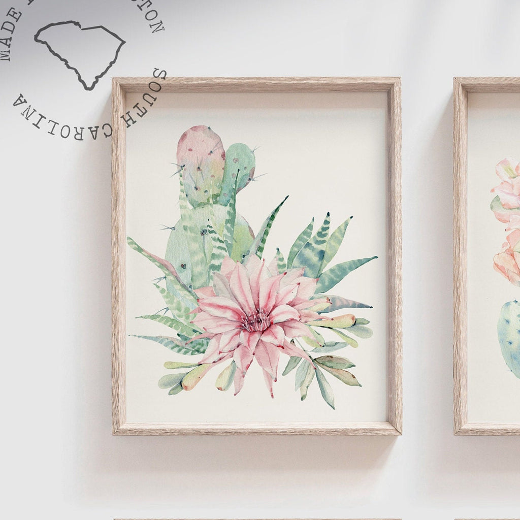 Cactus bloom prints, cactus floral nursery print, baby girl cactus nursery print, pink floral cactus wall prints, cactus nursery decor set 4