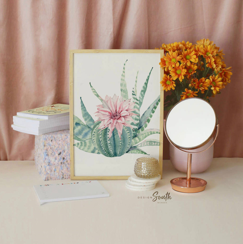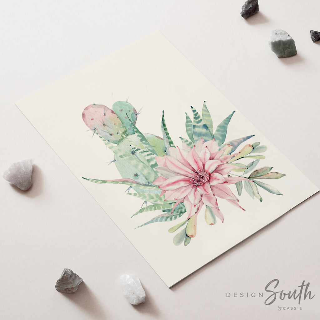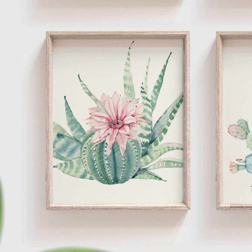 Cactus bloom prints, cactus floral nursery print, baby girl cactus nursery print, pink floral cactus wall prints, cactus nursery decor set 4