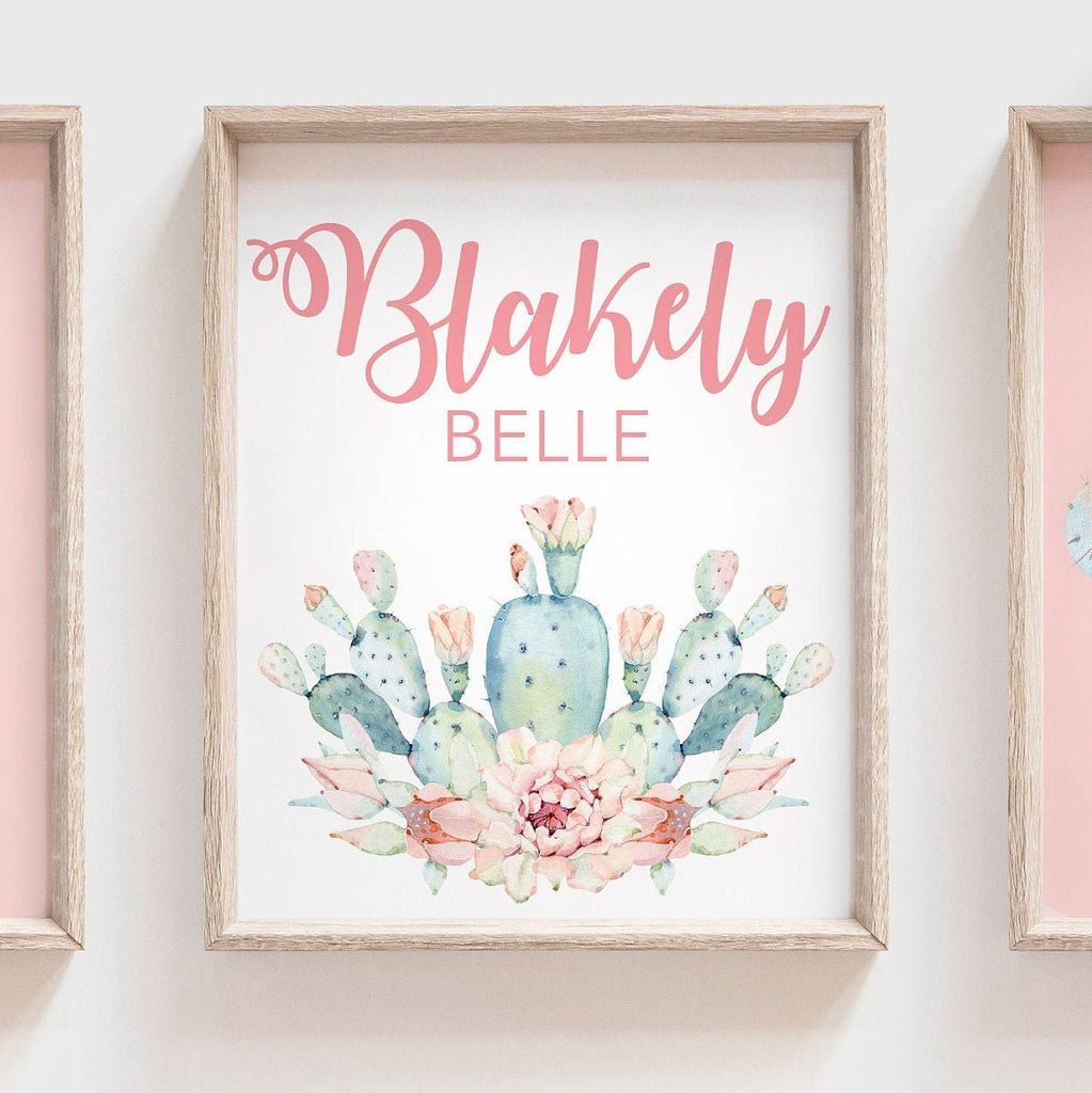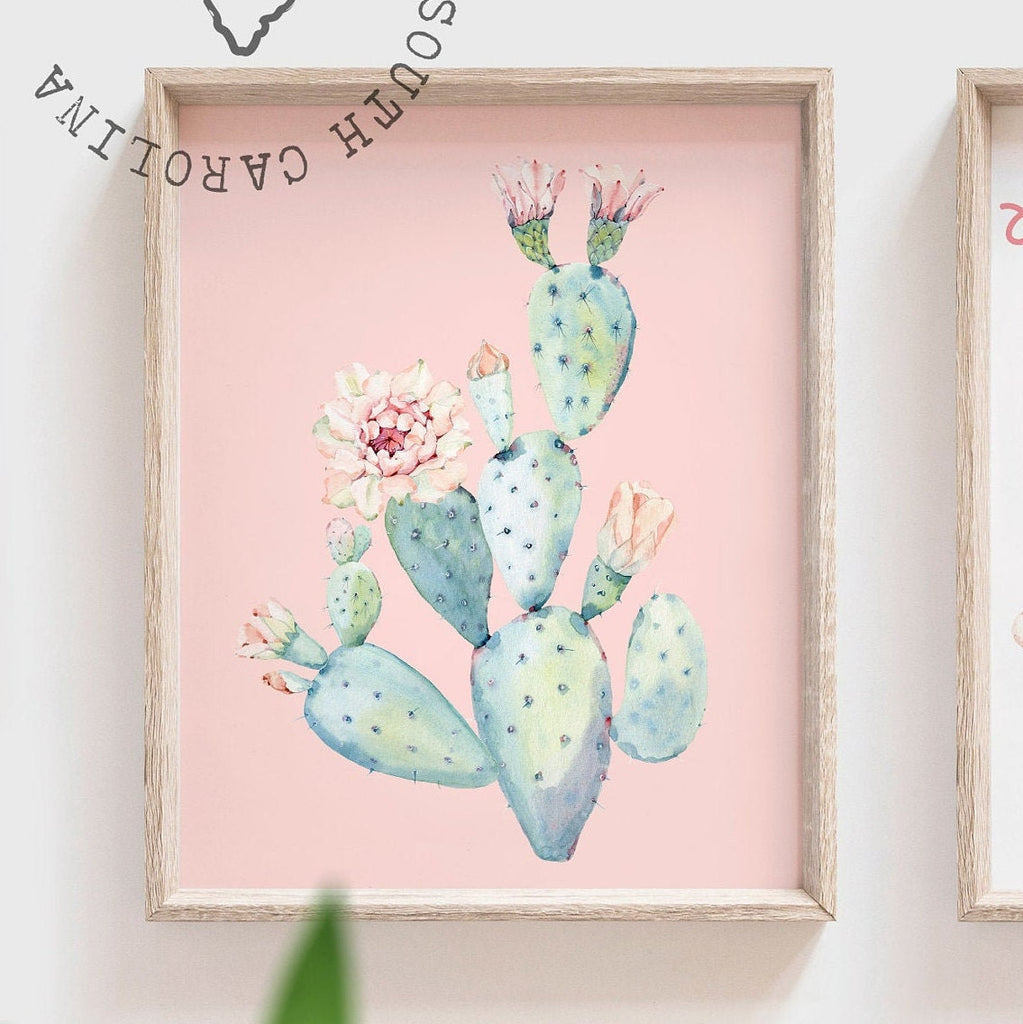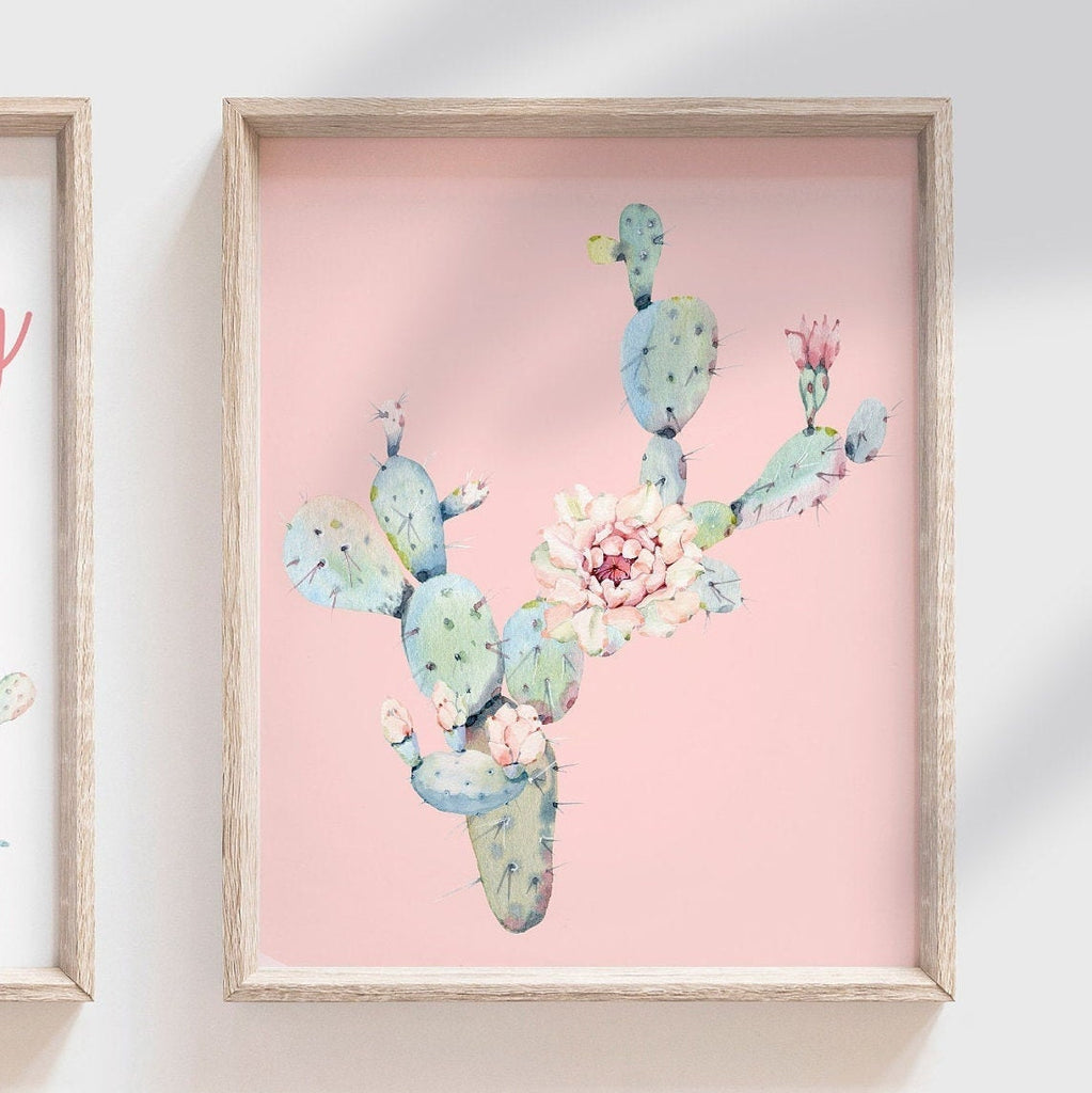 Nursery cactus succulent decor, girl bedroom cactus bloom succulent theme art prints girl cactus decor, boho baby decor pink cactus wall art