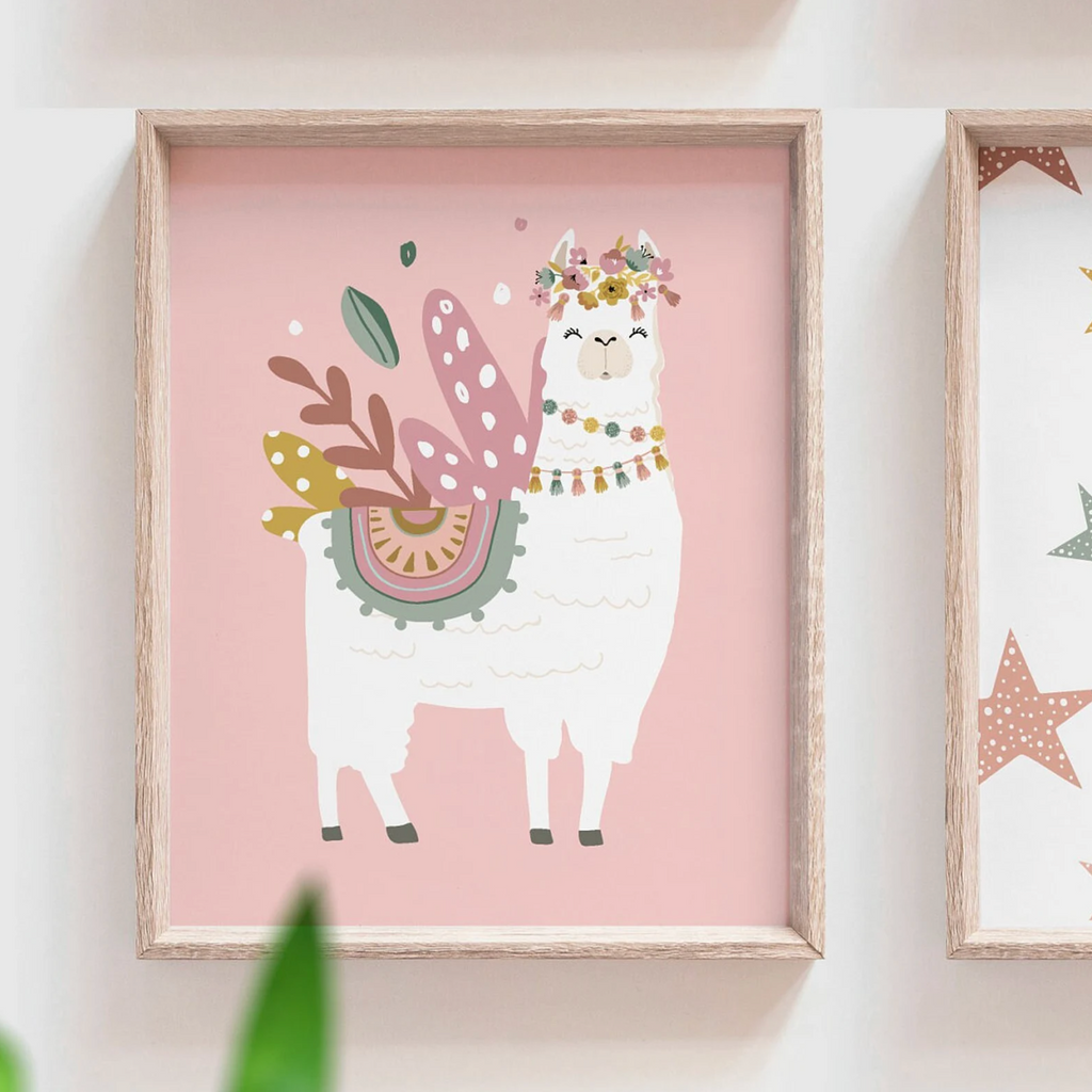 I take pride in creating all of my designs. These contemporary llama theme wall art prints will redefine the walls of a girl's nursery, playroom or bedroom. Each design is curated with a passion and vision to create inspired spaces for you and your little ones.