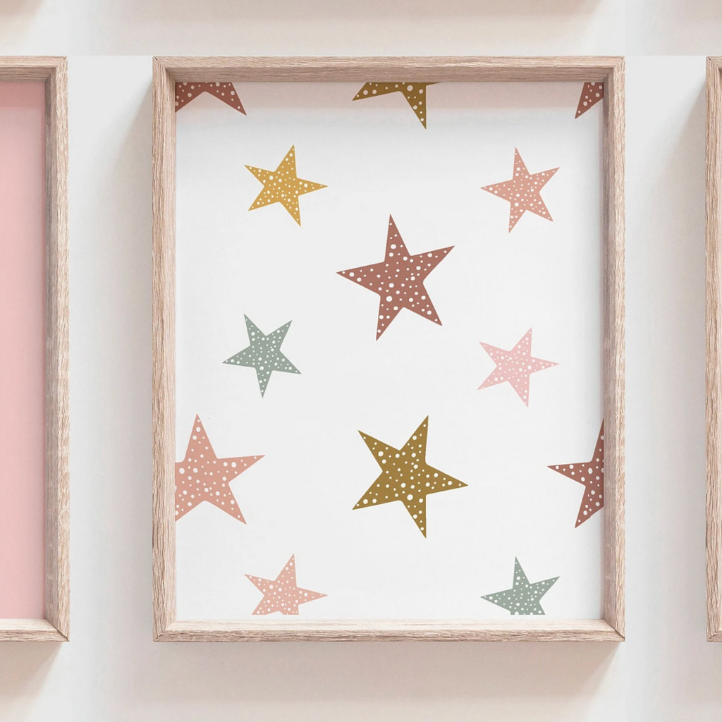 Stars rainbows pink boho baby room decor, baby girl nursery ideas mauve pink, bohemian style nursery art print set for girl, personalized gift girl boho llama