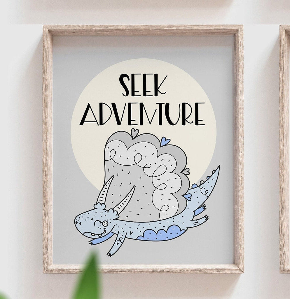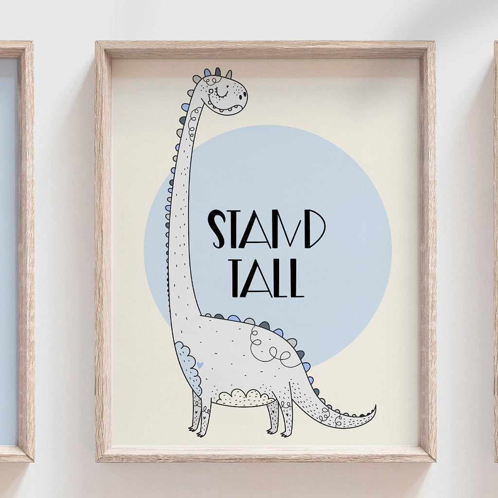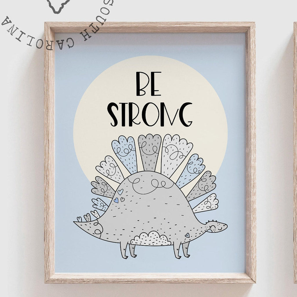 Product description: Dinosaur themed prints with inspirational sayings reading, "Be Strong. Stand Tall. Dream Big. Seek Adventure. Be Kind. Be Yourself." Other options are also available in my shop.
