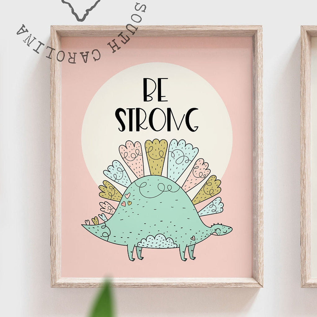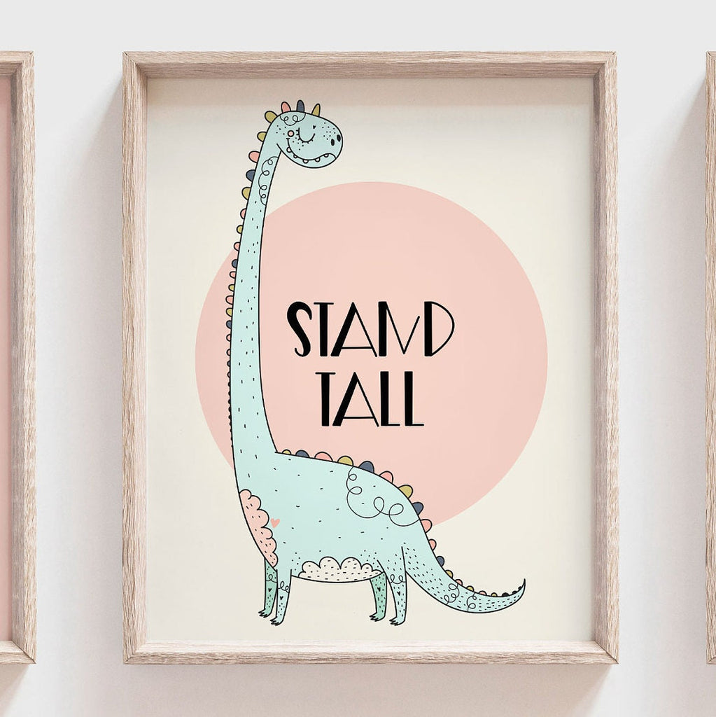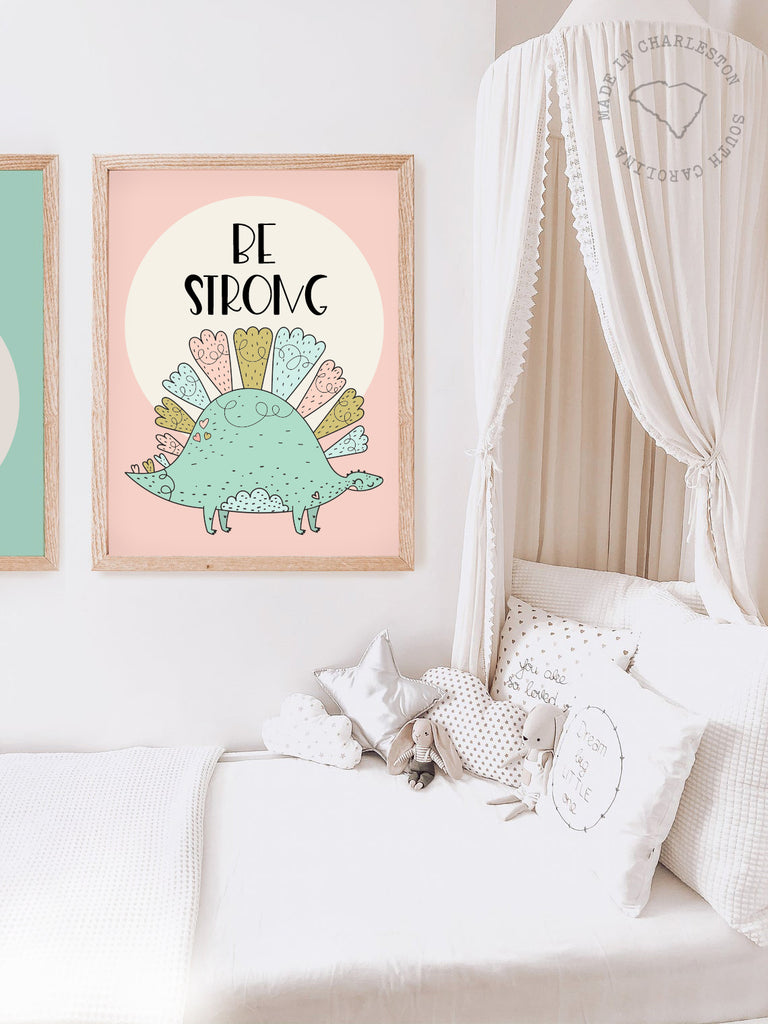 Baby girl mint pink dinosaur decor, girl dinosaur nursery print set, shower girl dinosaur theme gift, sweet girl pink baby dinosaur gift art