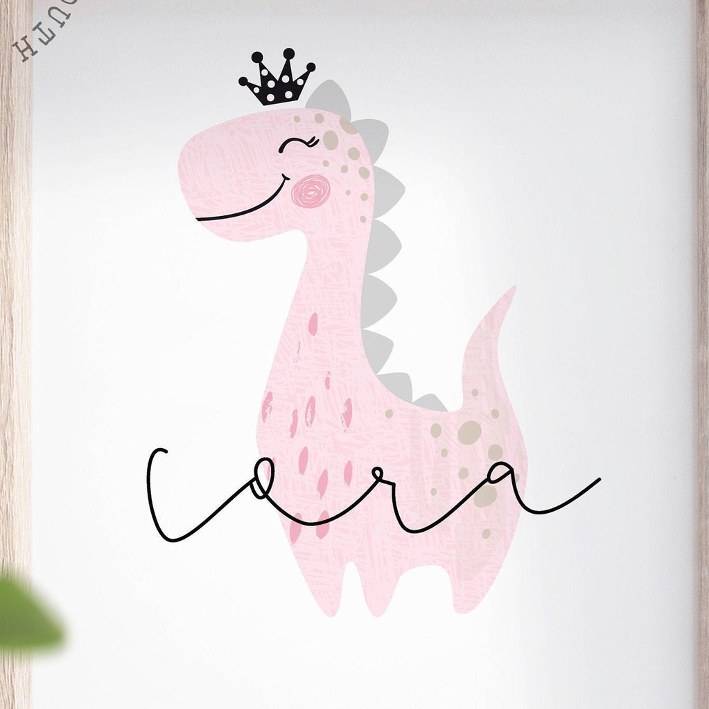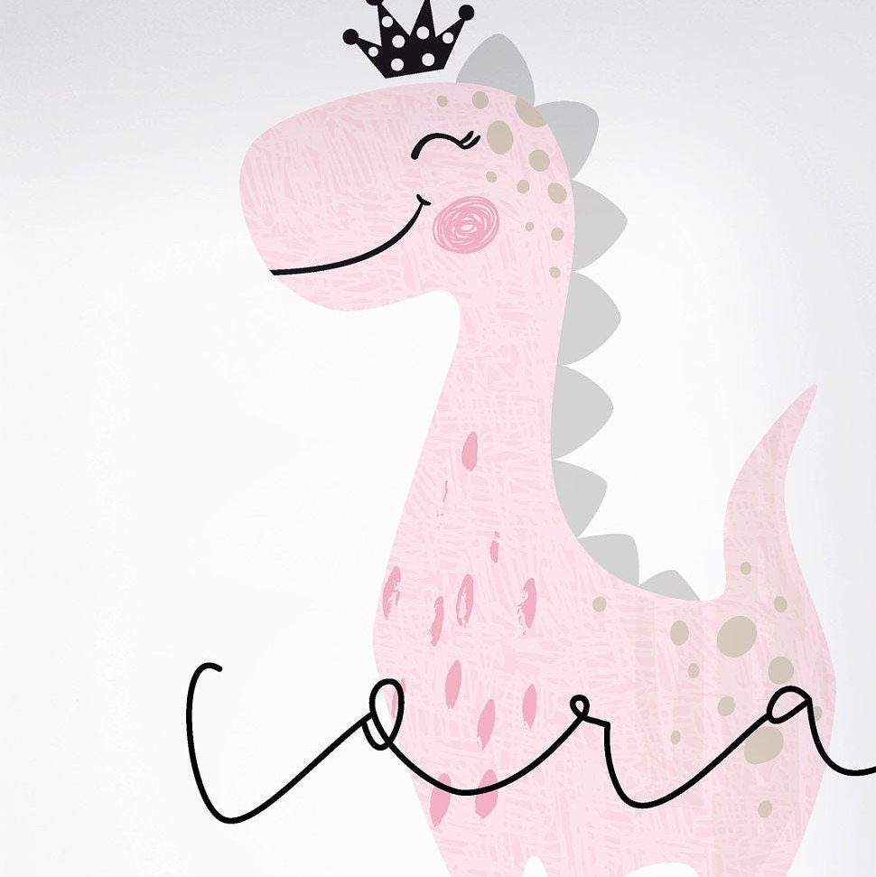 Baby girl pink princess dinosaur art, girl dinosaur nursery print personalized, shower girl dinosaur themed gift, sweet girl dinosaur gift