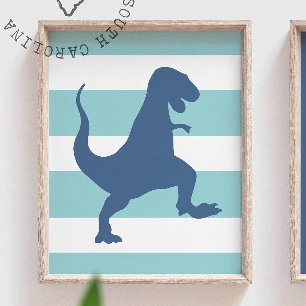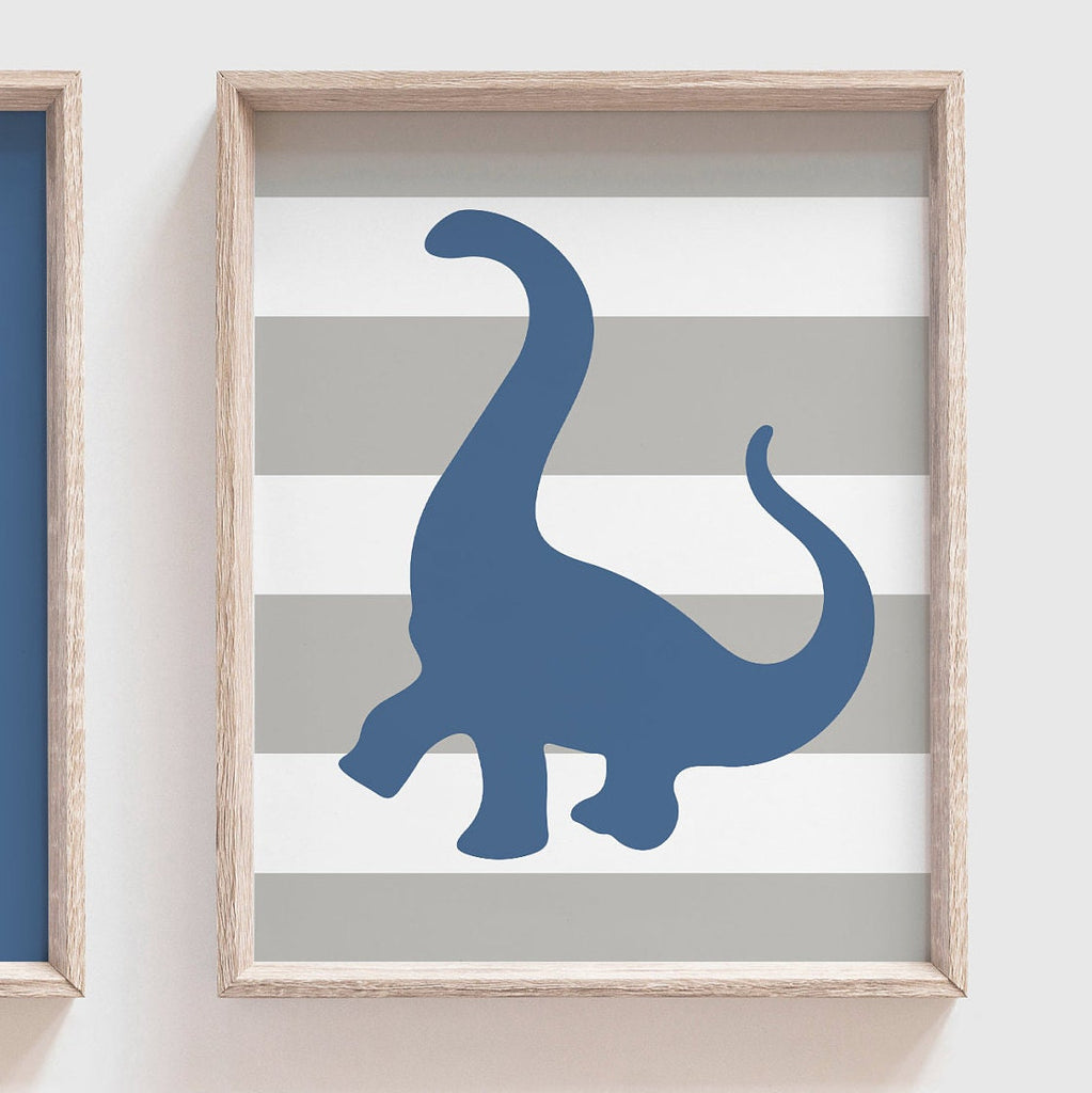 Blue gray dinosaur bedroom wall art, dinosaur decor for boy, gray dinosaur kid print set, baby boy dinosaur theme personalized nursery decor