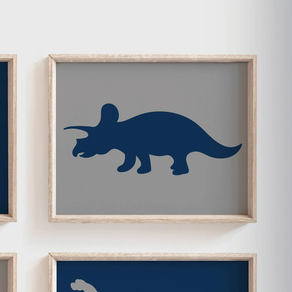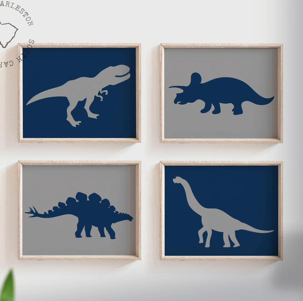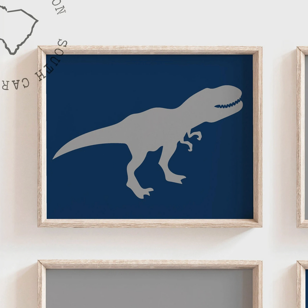 I take pride in creating all of my designs. These contemporary dinosaur themed wall prints will redefine the walls of a boy's nursery, playroom or bedroom. Each design is curated with a passion and vision to create inspired spaces for you and your little ones.