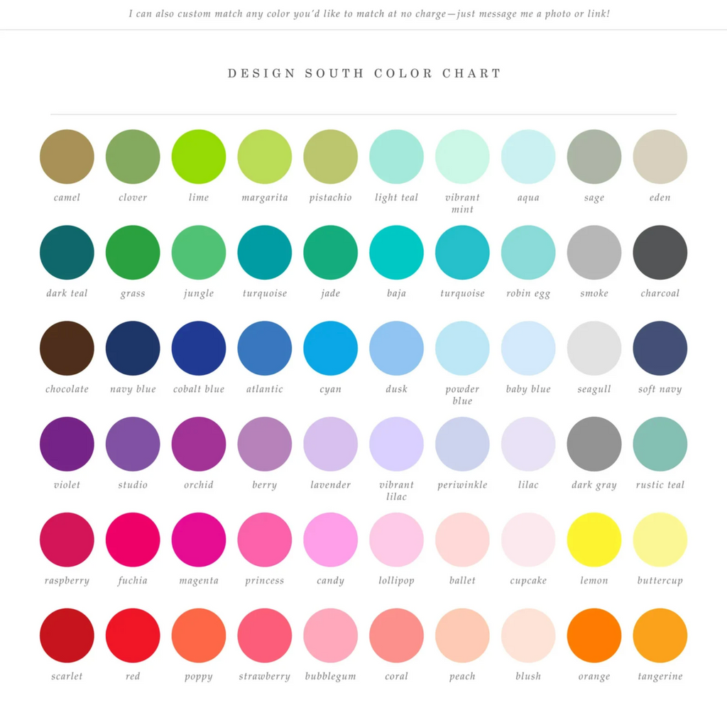 **NOTE: Please leave a message in the 'notes to seller' section during checkout with your color choices from the chart above if you are requesting colors that are different from this listing. If you do not see the color(s) you want, send me a message! I also accept pictures of nurseries, bedding, and decor for color matching.