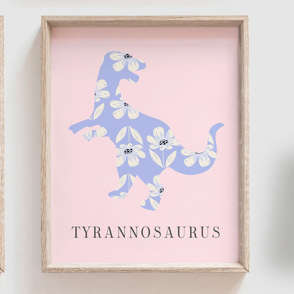 Floral nursery dinosaurs, girl's pink dinosaur art, baby girl dinosaur theme, girly dinosaur print, girl's bedroom ideas dinosaurs flowers