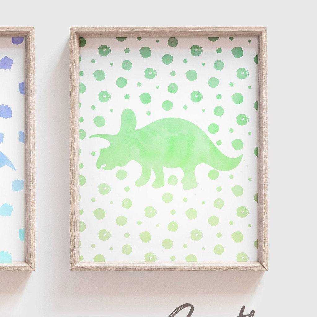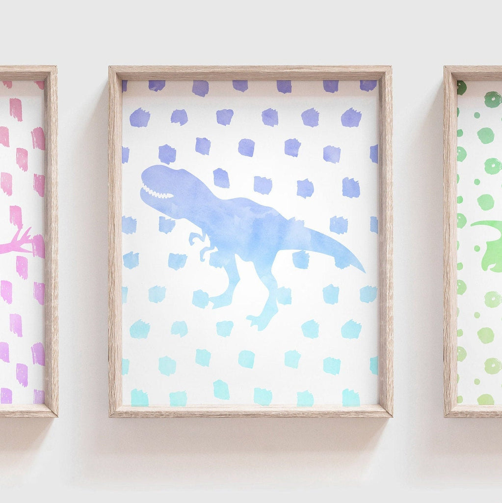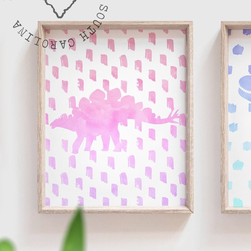 Product description: Dinosaur theme prints in pink, blue and green watercolor textures. Other options are also available in my shop.