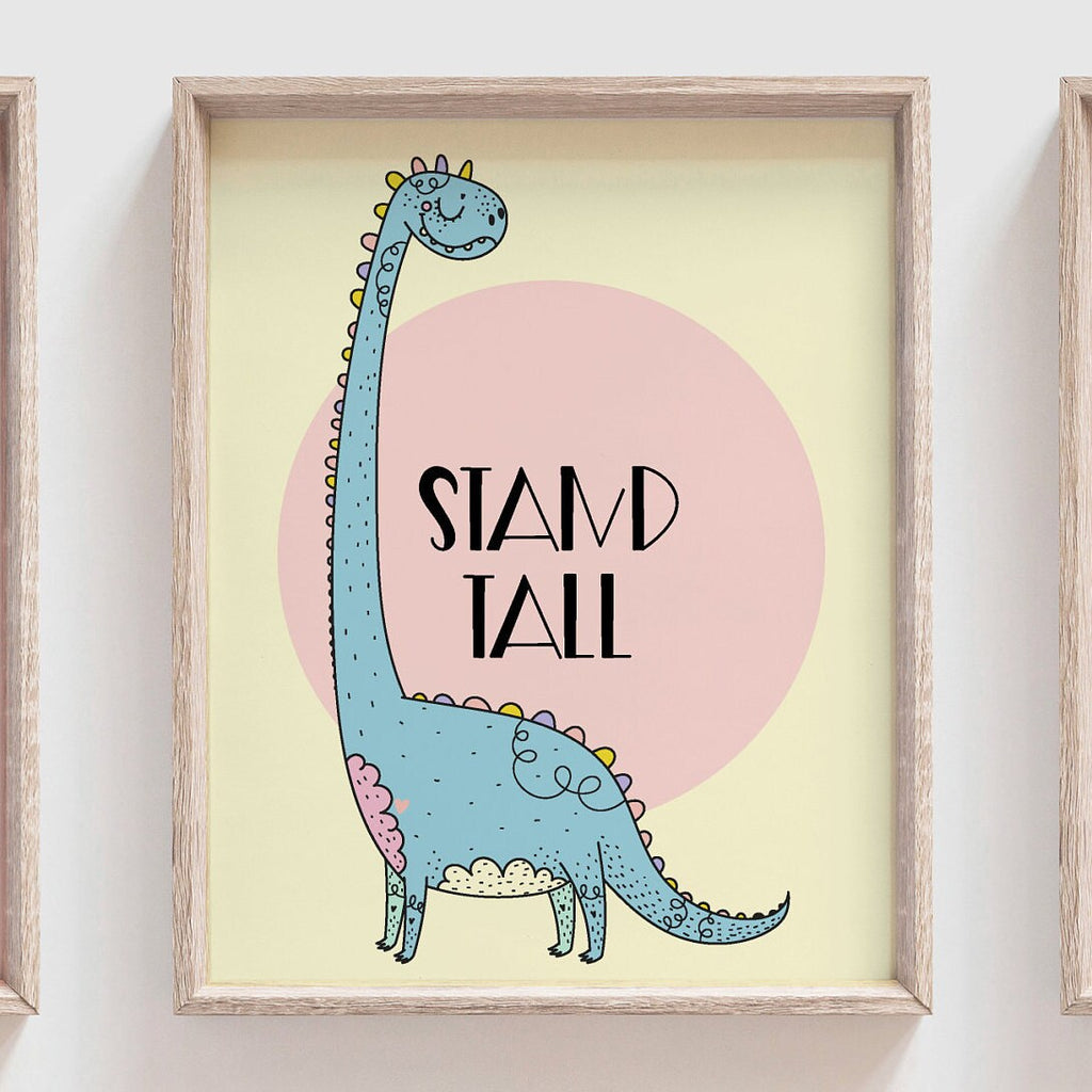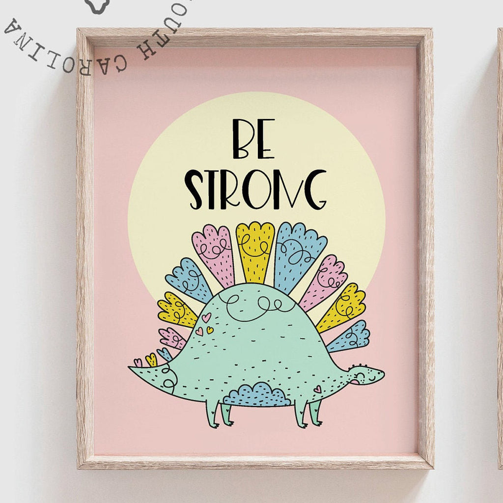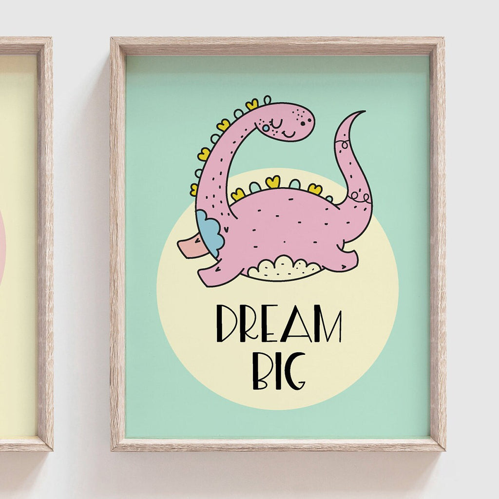 Girls pastel dinosaur art, girly dinosaur theme, girl dinosaurs modern inspirational, colorful dinosaur wall print set, pink dinosaur wall