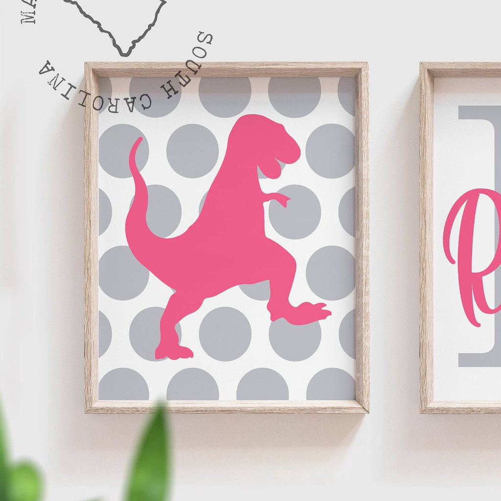 Girls pink dinosaur room, pink gray girls dinosaur nursery art, girl dinosaur decor, girl dinosaur wall art, girls bedroom, girls dinosaurs