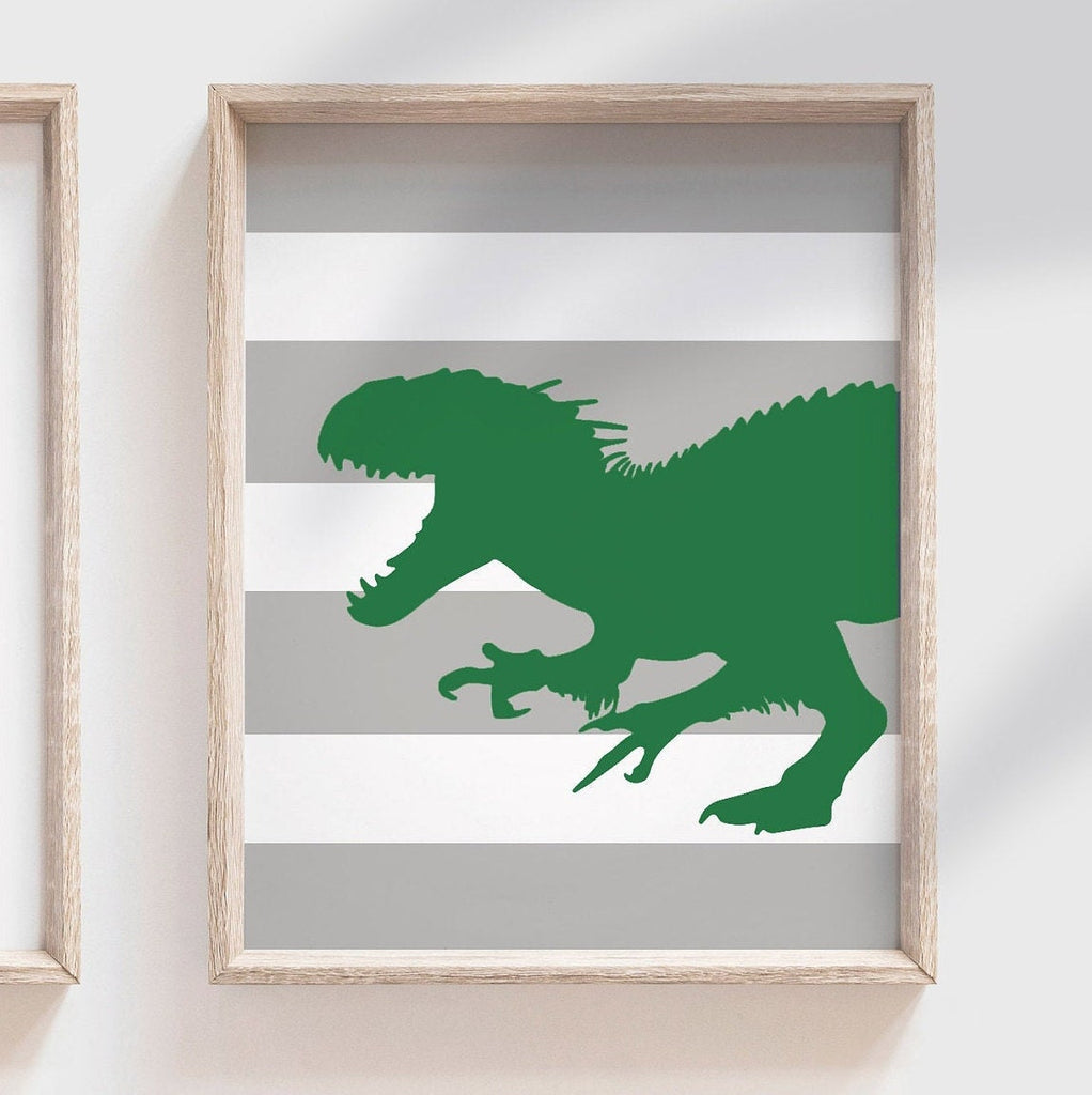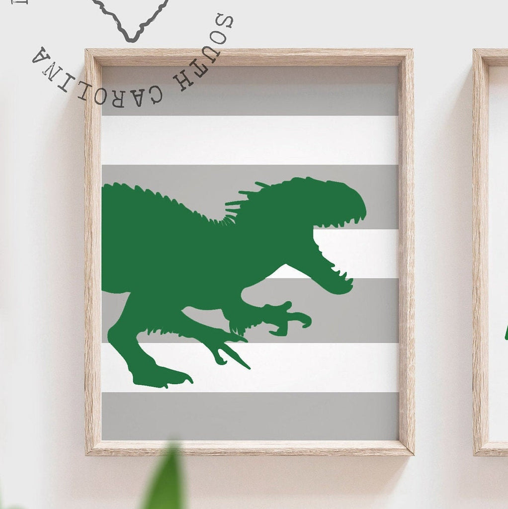 Kelly green dinosaur boys bedroom wall art, green dinosaur, green and gray boys wall art t-rex dinosaur, boys wall decor dinosaur theme room