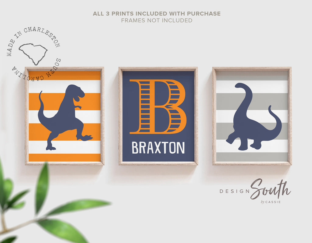Little boy's bedroom wall ideas, gray and navy dinosaur decor, boys nursery art dinosaurs, bedroom wall print dinosaur, dinosaur shower gift