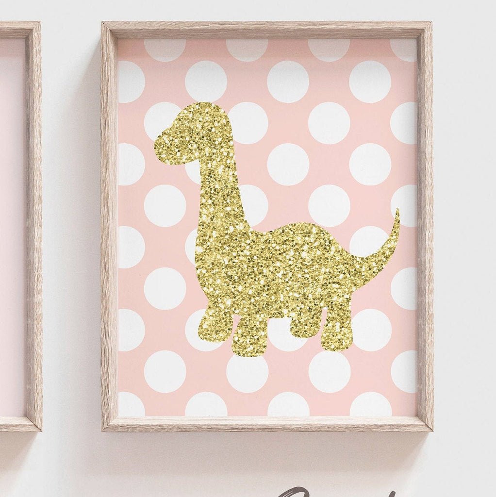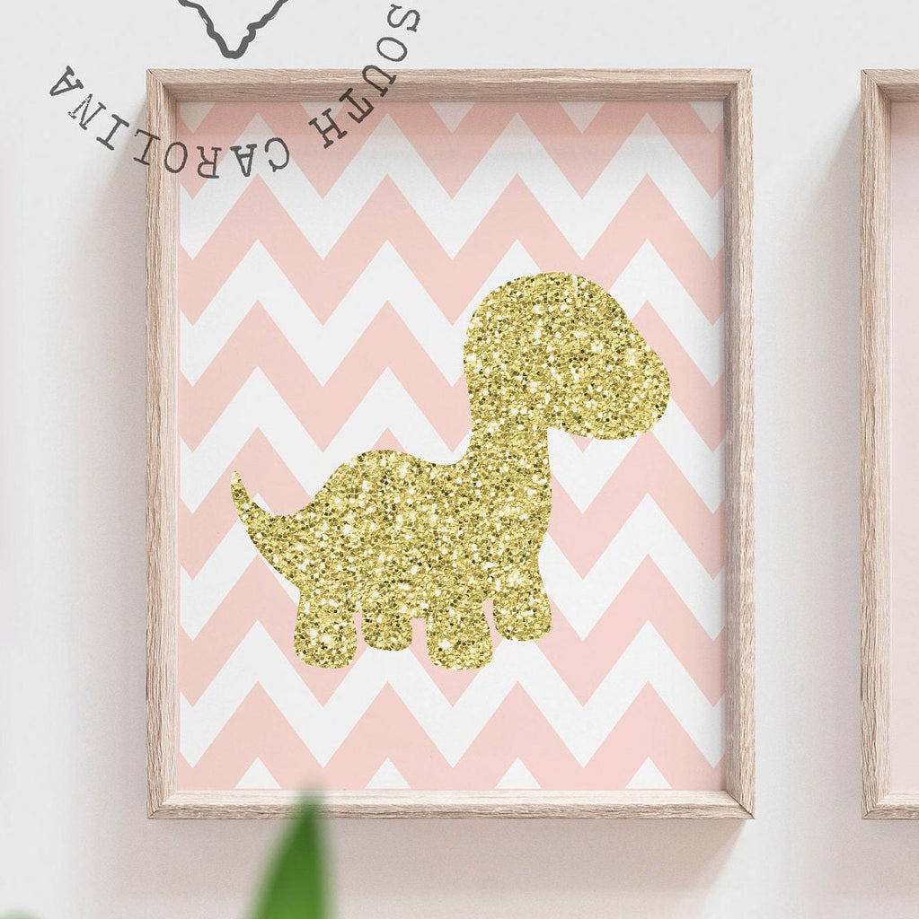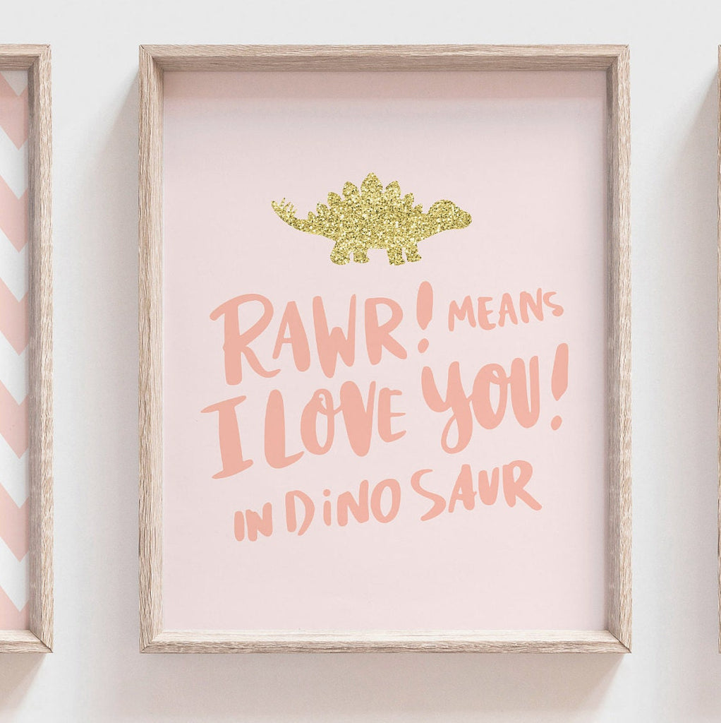 Pink gold girl dinosaur nursery art, girl dinosaur gift, baby girl dinosaur, rawr means I love you in dinosaur, girls bedroom dinosaur decor