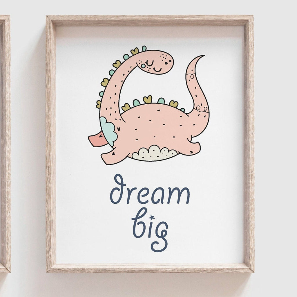 I take pride in creating all of my designs. These adorable dinosaur theme wall art prints will redefine the walls of a girl's nursery, playroom or bedroom. Each design is curated with a passion and vision to create inspired spaces for you and your little ones.