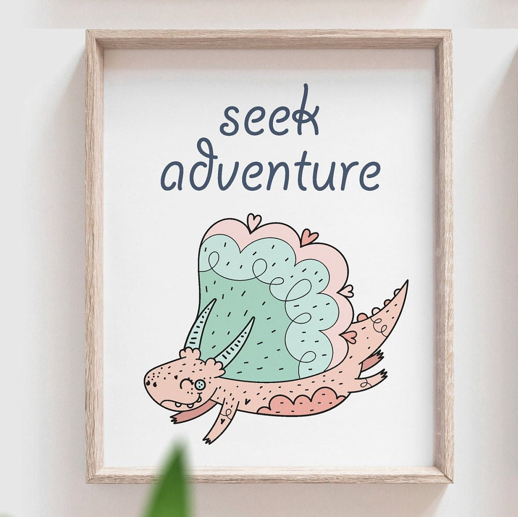 Product description: Dinosaur themed prints with inspirational sayings reading, "Be Strong. Stand Tall. Dream Big. Seek Adventure. Be Kind. Be Yourself." Other options are also available in my shop.