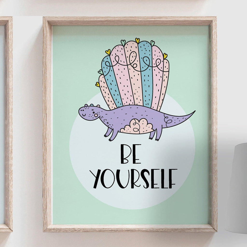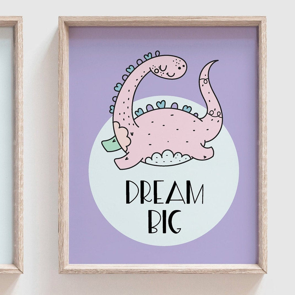 Purple mint green girly dinosaurs nursery art for girl, baby girl dinosaur nursery art, purple dinosaur gallery wall, dinosaur girl birthday