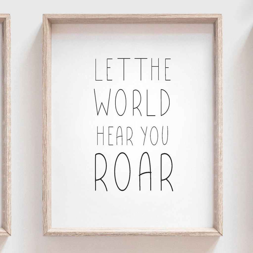 Product description: Princess dinosaur prints with center quote reading, "Let the world hear you roar," and matching personalized names to be customized with your children's names. Other options are also available in my shop.