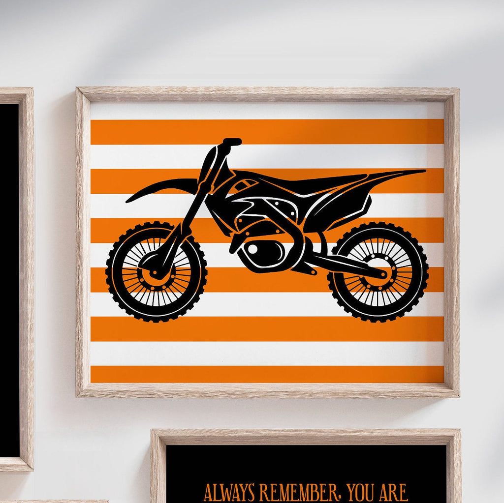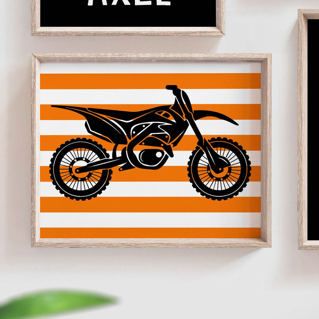 Boy bedroom dirt bike theme, off-road theme art prints, dirt bike sports boy birthday gift, dirt bike motocross, boys room, bike boy decor