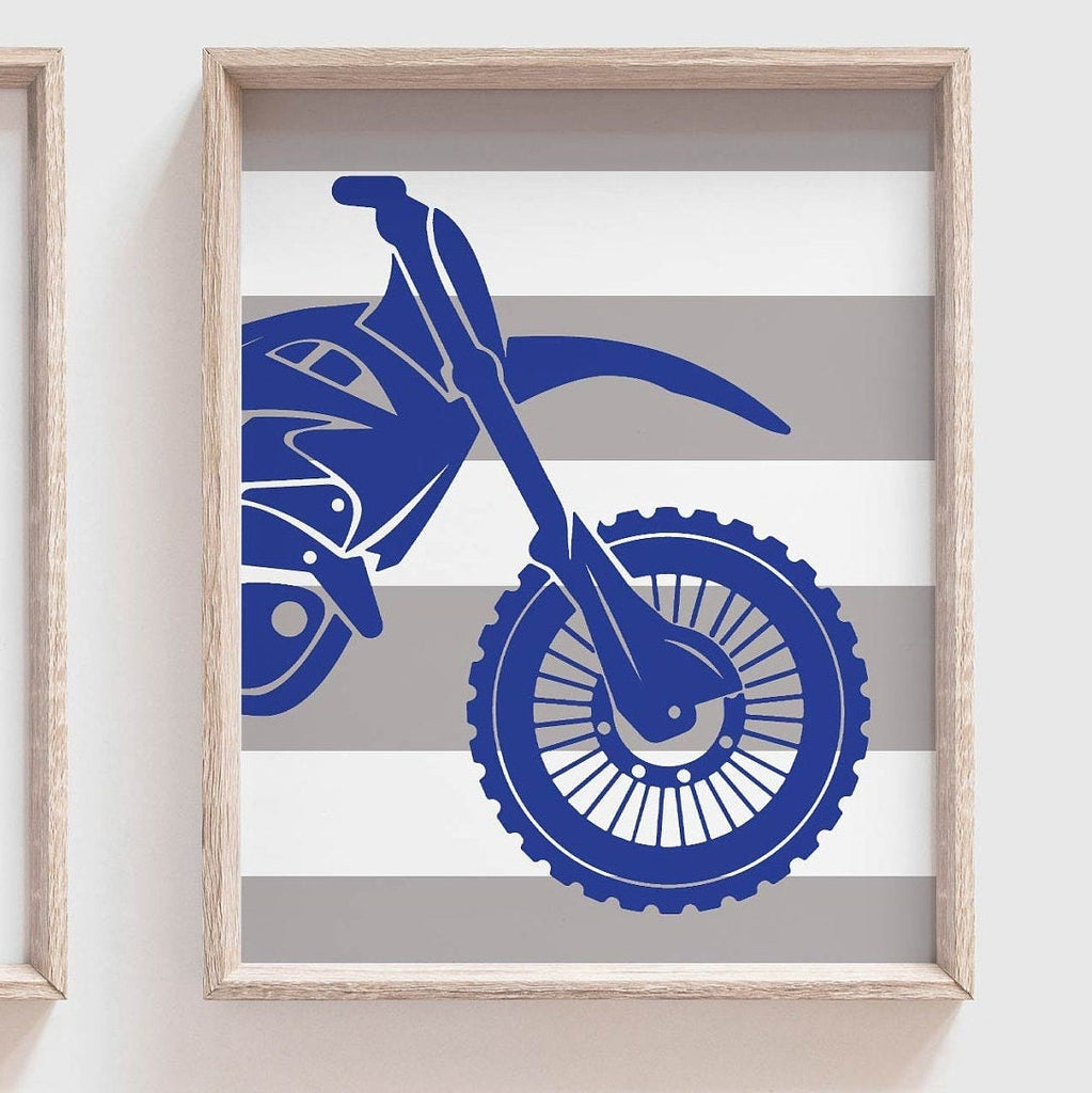 I take pride in creating all of my designs. These contemporary dirt bike wall art prints will redefine the walls of a boy's nursery, playroom or bedroom. Each design is curated with a passion and vision to create inspired spaces for you and your little ones.