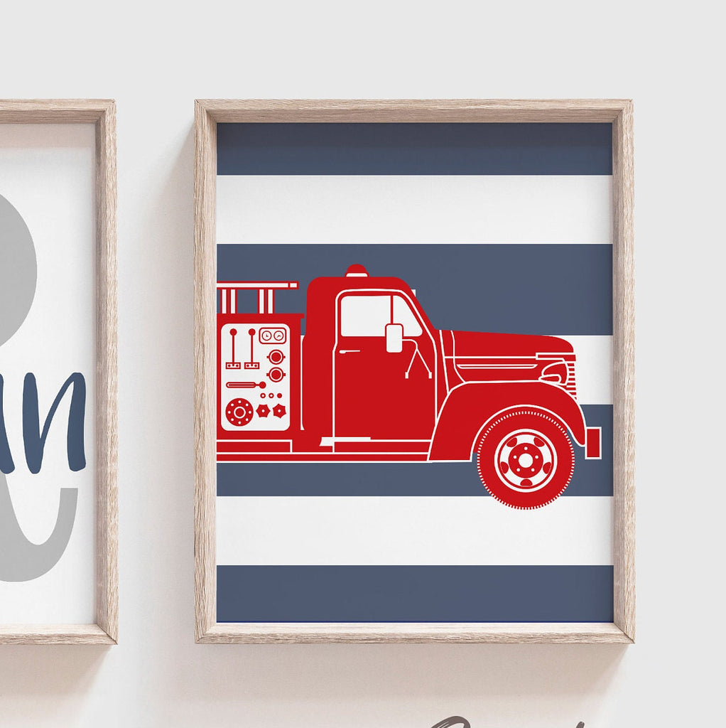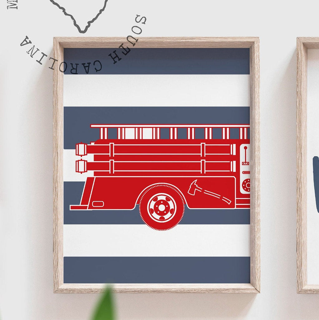 I take pride in creating all of my designs. These contemporary fire truck theme wall art prints will redefine the walls of a boy's nursery, playroom or bedroom. Each design is curated with a passion and vision to create inspired spaces for you and your little ones.