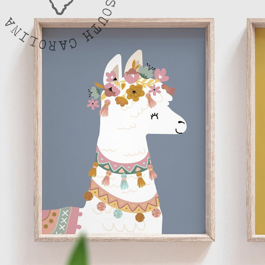 Product description: Llama theme prints using a soft boho neutral color palette. Background colors used in this listing are hartley, stanford and prentice. Other options are also available in my shop.