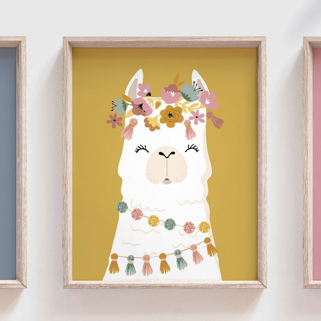 I take pride in creating all of my designs. These contemporary llama theme wall art prints will redefine the walls of a child's nursery, playroom or bedroom. Each design is curated with a passion and vision to create inspired spaces for you and your little ones.