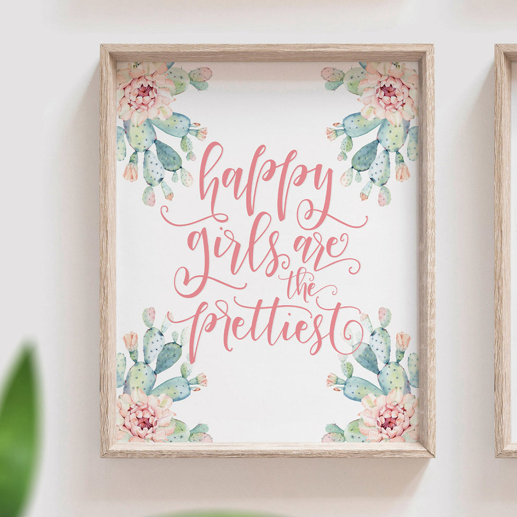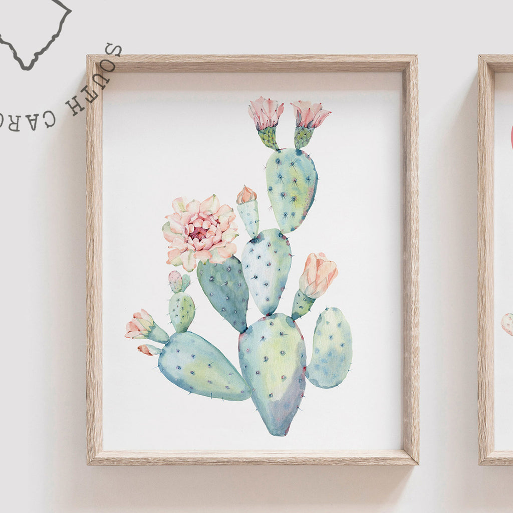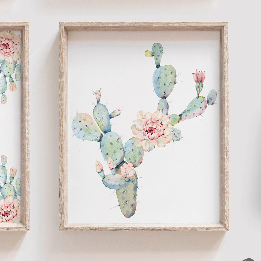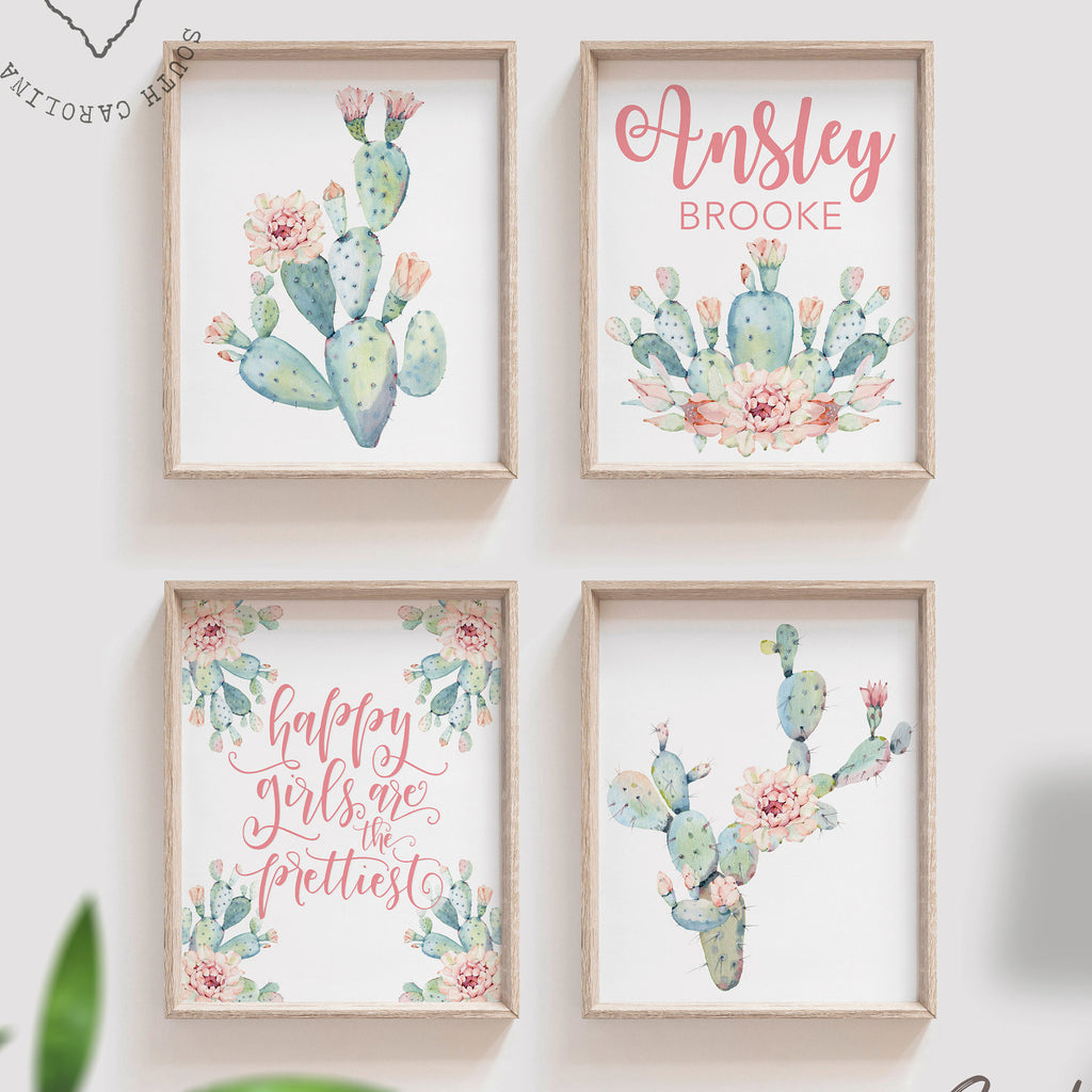 Floral cactus wall art nursery, baby girl's room pink wall art, succulent desert cactus bloom pink flowers, gallery wall, girl playroom idea