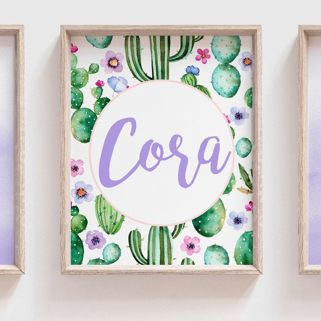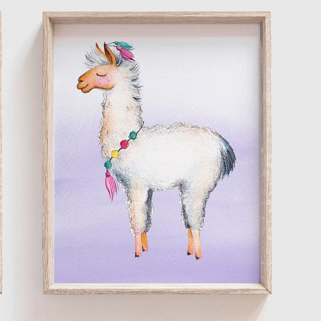 Lavender purple nursery, llama print, boho baby room, ombre baby watercolor art, baby girl gift, personalized name art, shower gift alpaca