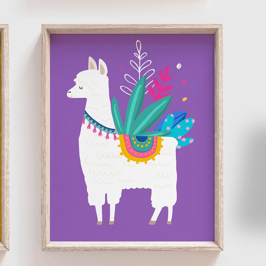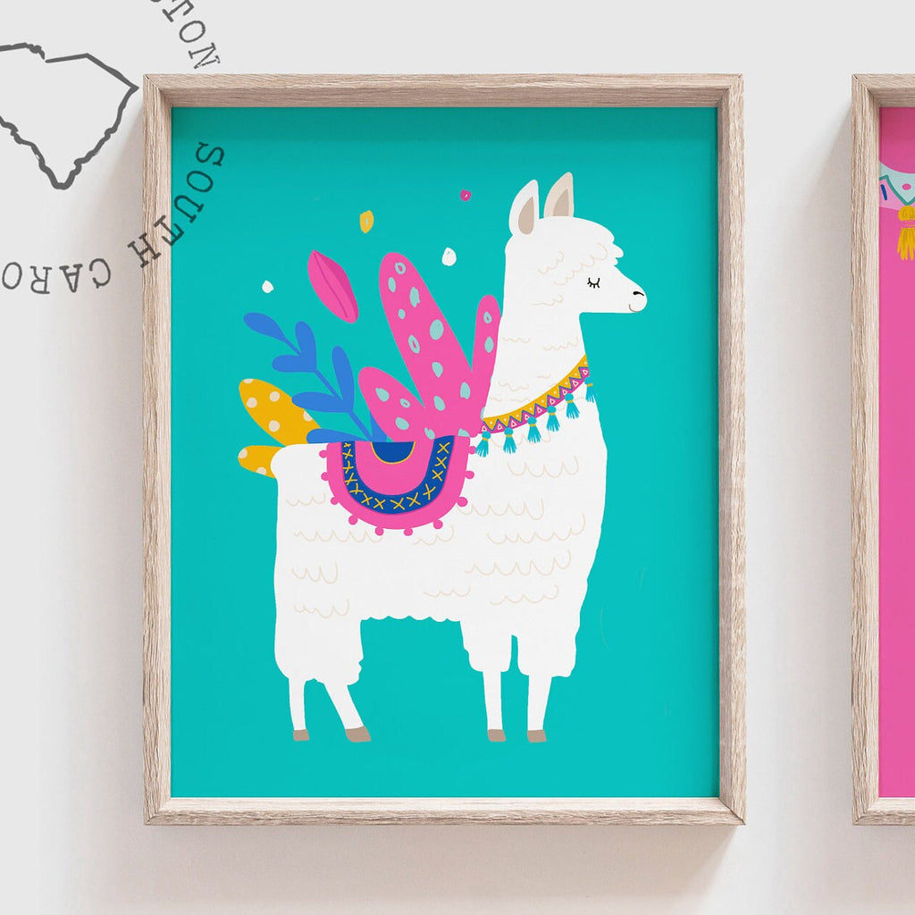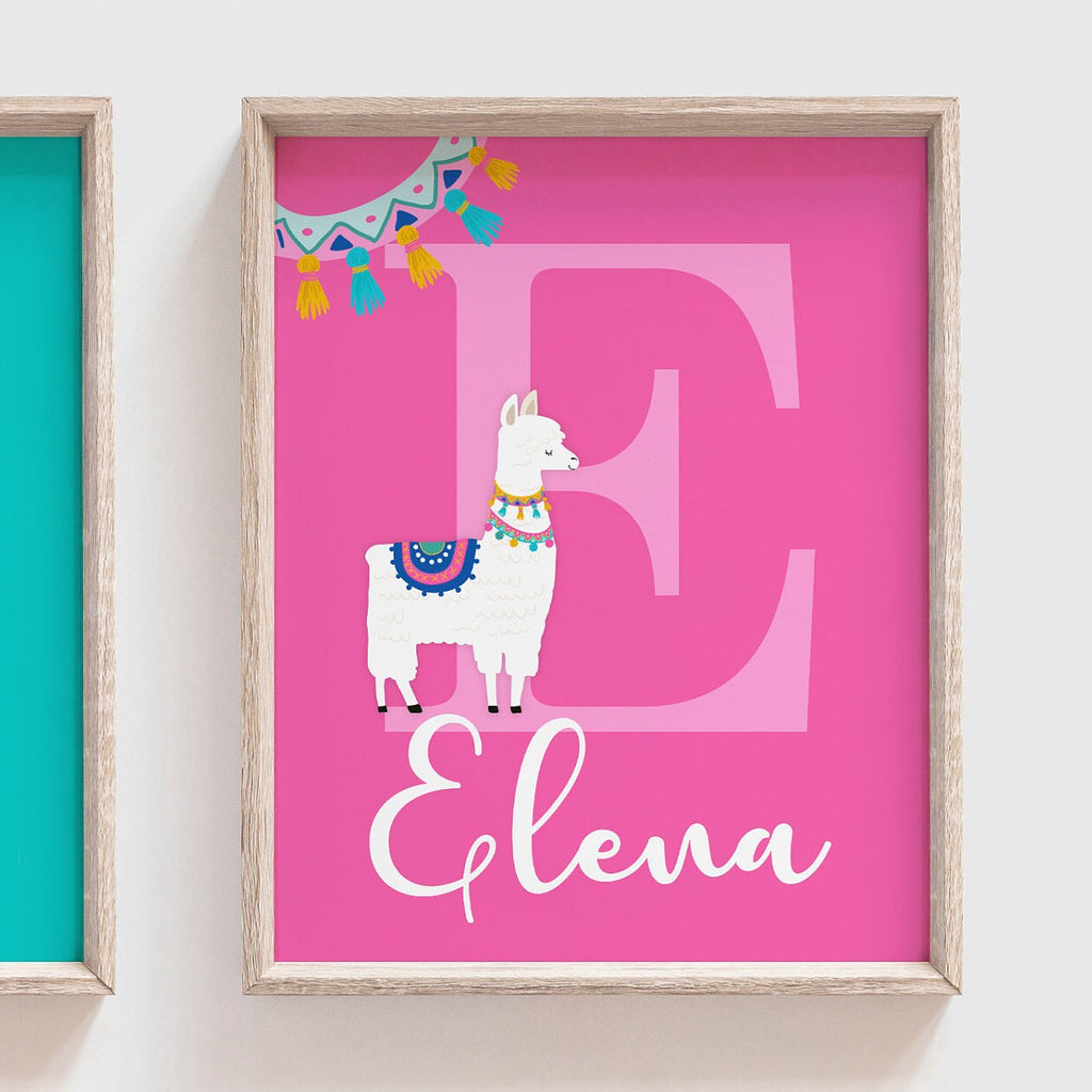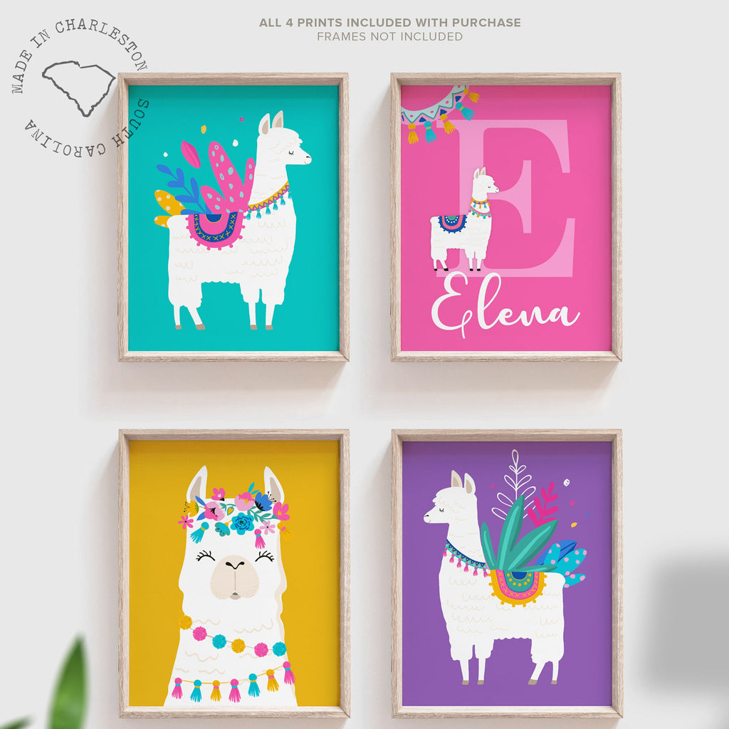 Llama gift girl, llama baby shower, personalized llama decor, nursery succulents, alpaca theme bedroom, floral alpaca, floral llama wall art