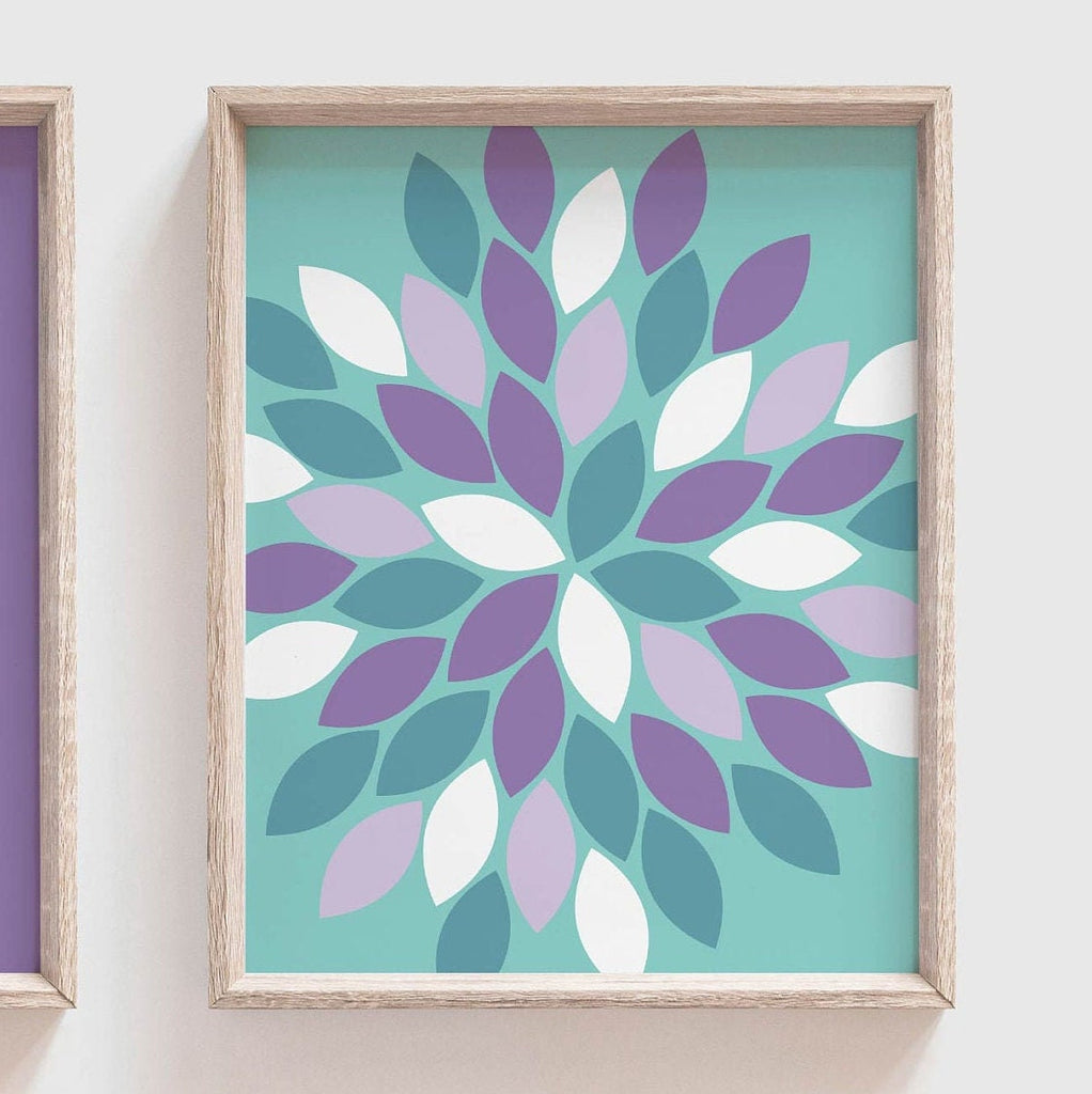 Purple and teal nursery quote for girl room, floral wall art for nursery purple aqua teal blue, gift for newborn baby girl, baby shower gift