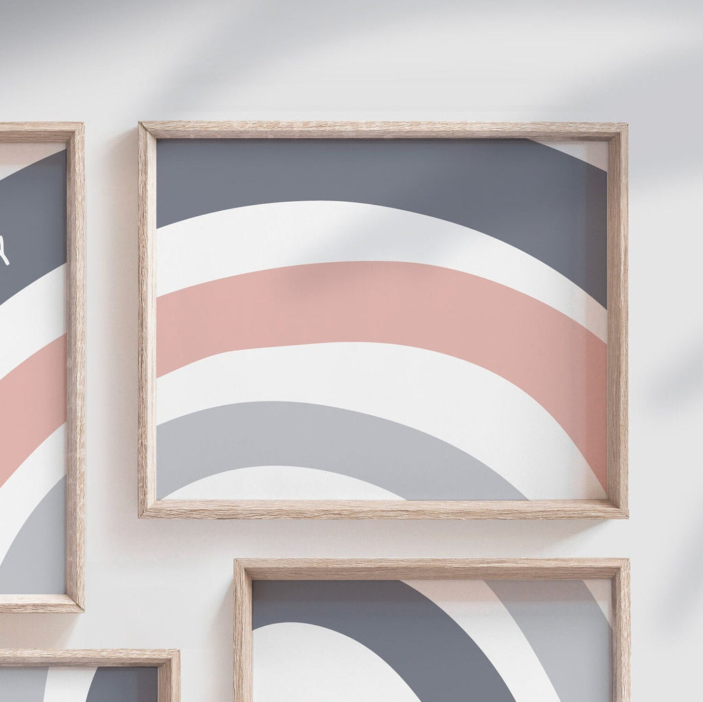 I take pride in creating all of my designs. These contemporary rainbow theme wall art prints will redefine the walls of a girl's nursery, playroom or bedroom. Each design is curated with a passion and vision to create inspired spaces for you and your little ones.