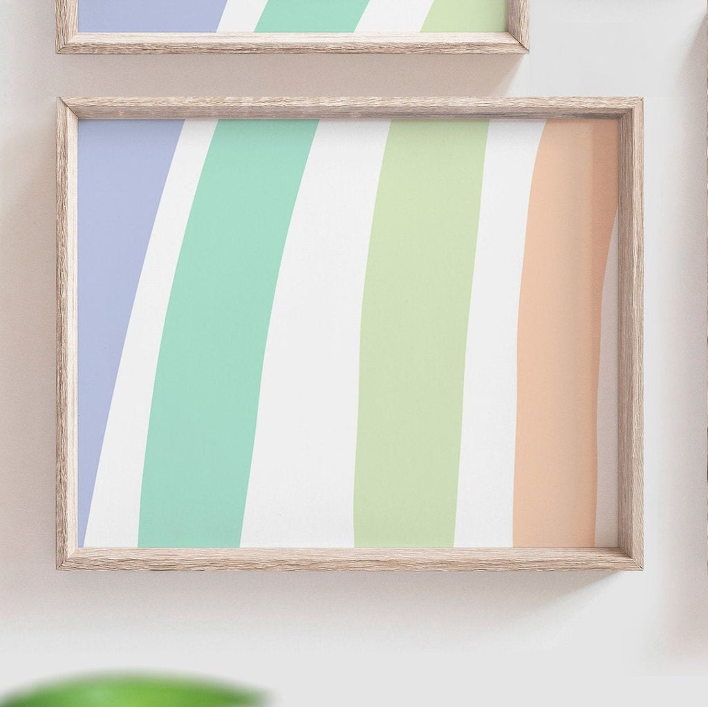 I take pride in creating all of my designs. These contemporary rainbow theme wall art prints will redefine the walls of a girl's nursery, playroom or bedroom. Each design is curated with a passion and vision to create inspired spaces for you and your little ones.